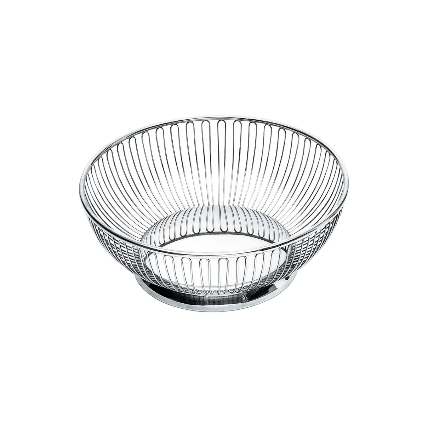 Rund trådkurv i blankpoleret rustfrit stål fra Alessi. Farve: stål. H: 8,5 x Ø 24,5 cm. Design: Ufficio Tecnico Alessi.
