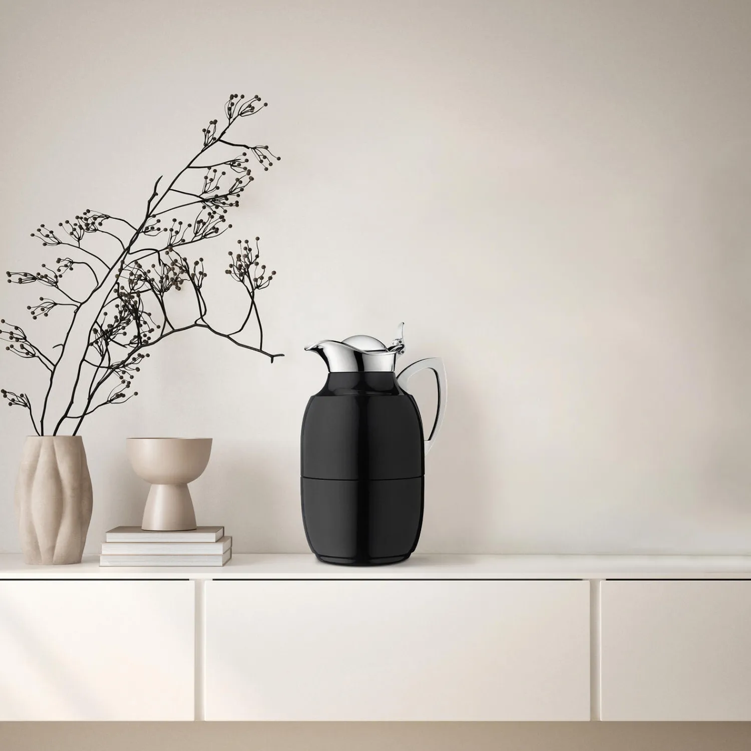 Alfi Juwel er en af verdens mest kendte termokander, og det oprindelige stilrene design kan dateres helt tilbage til 1918. Termokande i poleret stål i høj kvalitet. Dobbeltvægget AlfiDur-indsats i isolerende og hærdet vakuum-glas. Holder varmt i 12 timer, holder koldt i 24 timer. Unikt og praktisk hældesystem. Kan betjenes med én hånd. Ergonomisk, forkromet metalhåndtag. Fremstillet i Tyskland.