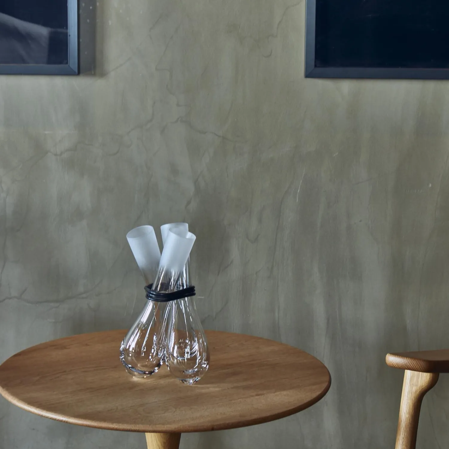 Denne mundblæste Trebensvase passer til de lidt større og kraftige blomster eller tørrede grene og frøstande.
