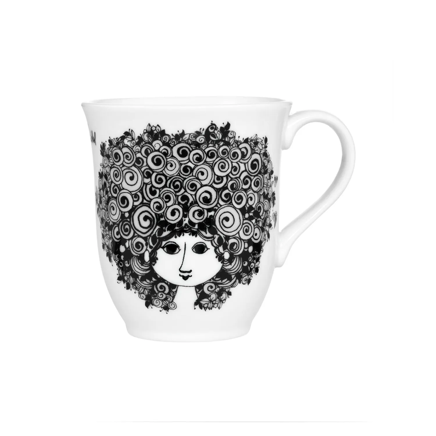 Rosalinde krus i hvid porcelæn med motiv fra Bjørn Wiinblad. Farve: sort. Mål: 10,2x dia.: 9,5 cm. Indeholder 35 cl. Design: Bjørn Wiinblad.