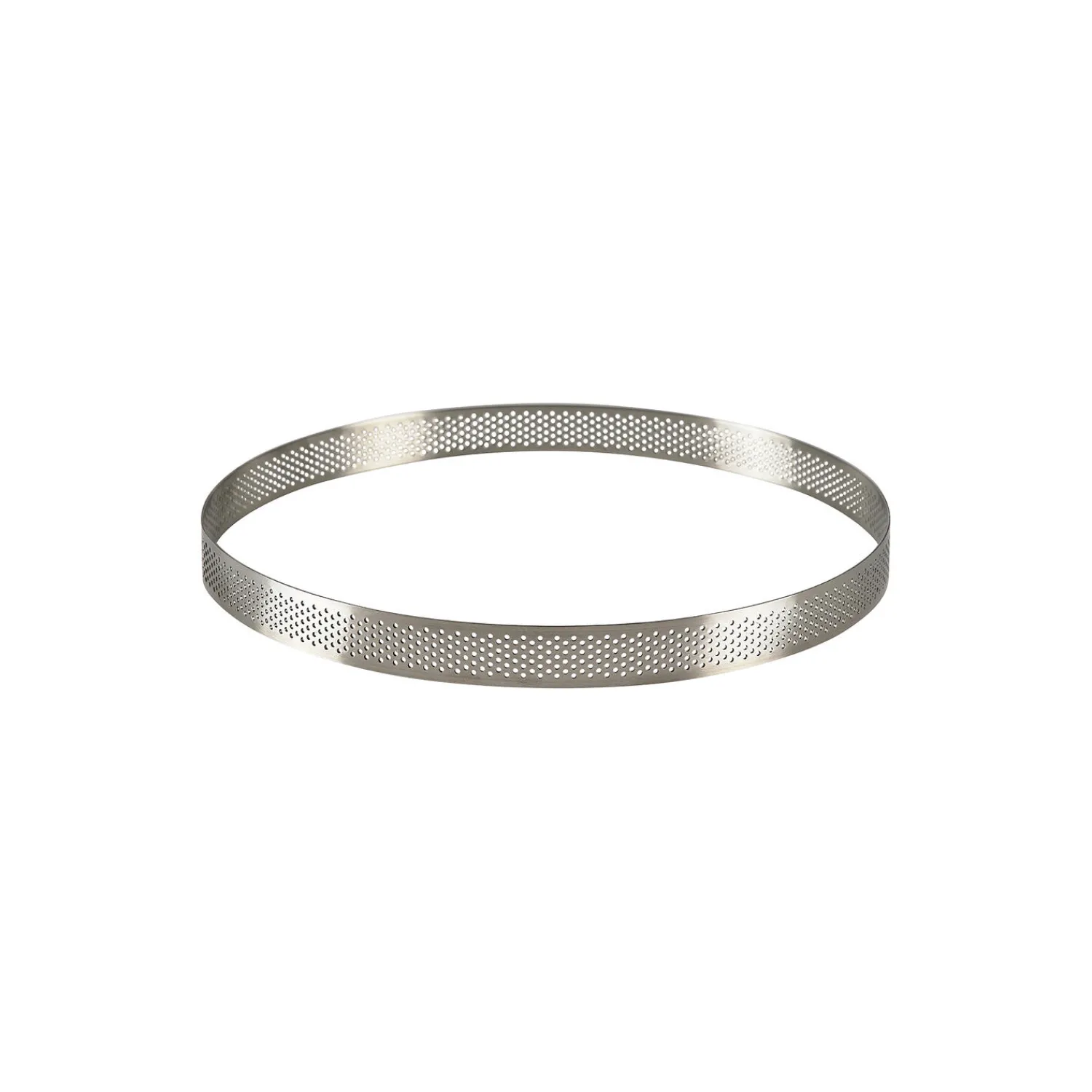 Rund tærtering i perforeret rustfrit stål til sprøde tærter, pizzaer, runde brød og lignende. De fine huller sørger for, at dejen kan komme af med dampen under bagningen. Det sikrer et sprødere resultat, og samtidig glider dejen ikke ned ad siden.