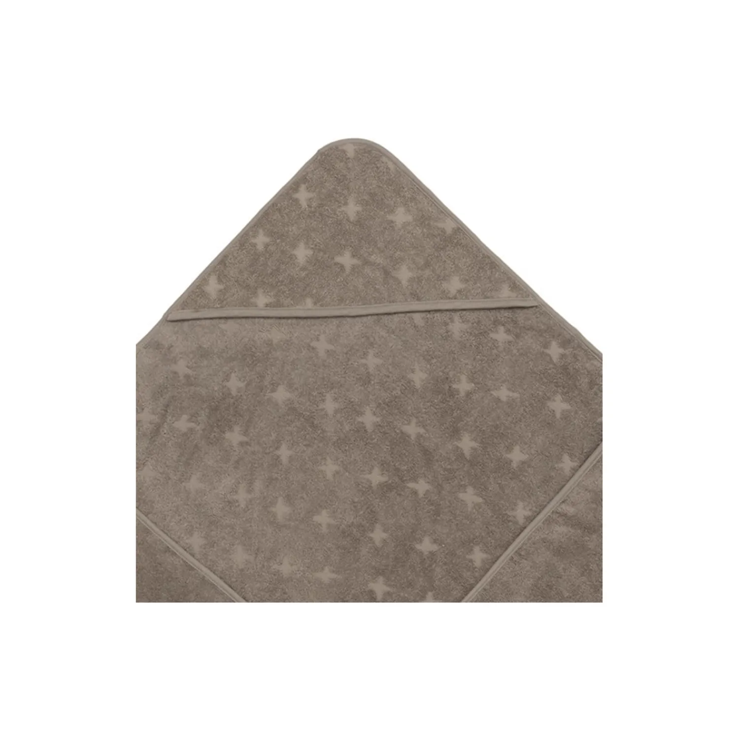 Babyhåndklæde med hætte og krydsmønster. Dejlig blødt og perfekt til de små da man kan pakke dem godt ind fra top til tå. 100 x 100 cm. Produktet er GOTS organic- certificeret, hvilket betyder at bomulden er certificeret økologisk, og at der i alle andre processer som farvning, strikning og syning er taget de strengeste hensyn til miljøet. GOTS er internationalt anerkendt som den førende standard for forarbejdning af tekstiler af økologisk bomuld. Derudover tages der også hensyn til arbejdsforholdene, hos dem der producerer tøjet. Økologisk bomuld 100%