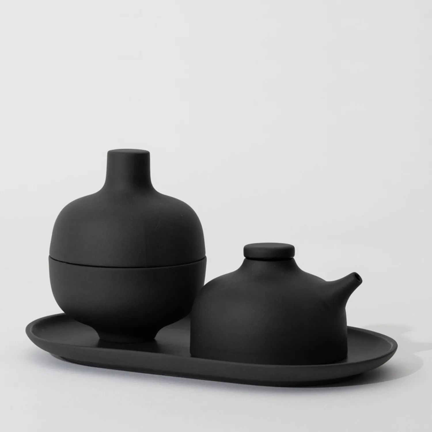 Carina Seth Andersson has once again managed to balance perfection and particularity in her new additions to Sand, her series of stoneware originally conceived for Nationalmuseum in Stockholm. The different objects are abstract yet familiar, alluding to age-old traditions refined to perfection. ‘There is a moment of surprise when you lift the lid,’ says Carina Seth Andersson. ‘The secrets of the chef unveiled! Together these earthenware objects will create a whole little landscape on the table.’ The trend to bring forward a multitude of different dishes for the table certainly does require the stage be set with a variety of vessels. Glazed on the inside, raw but softly polished on the exterior, the three black and clay-colored earthenware canisters are available in three different sizes.