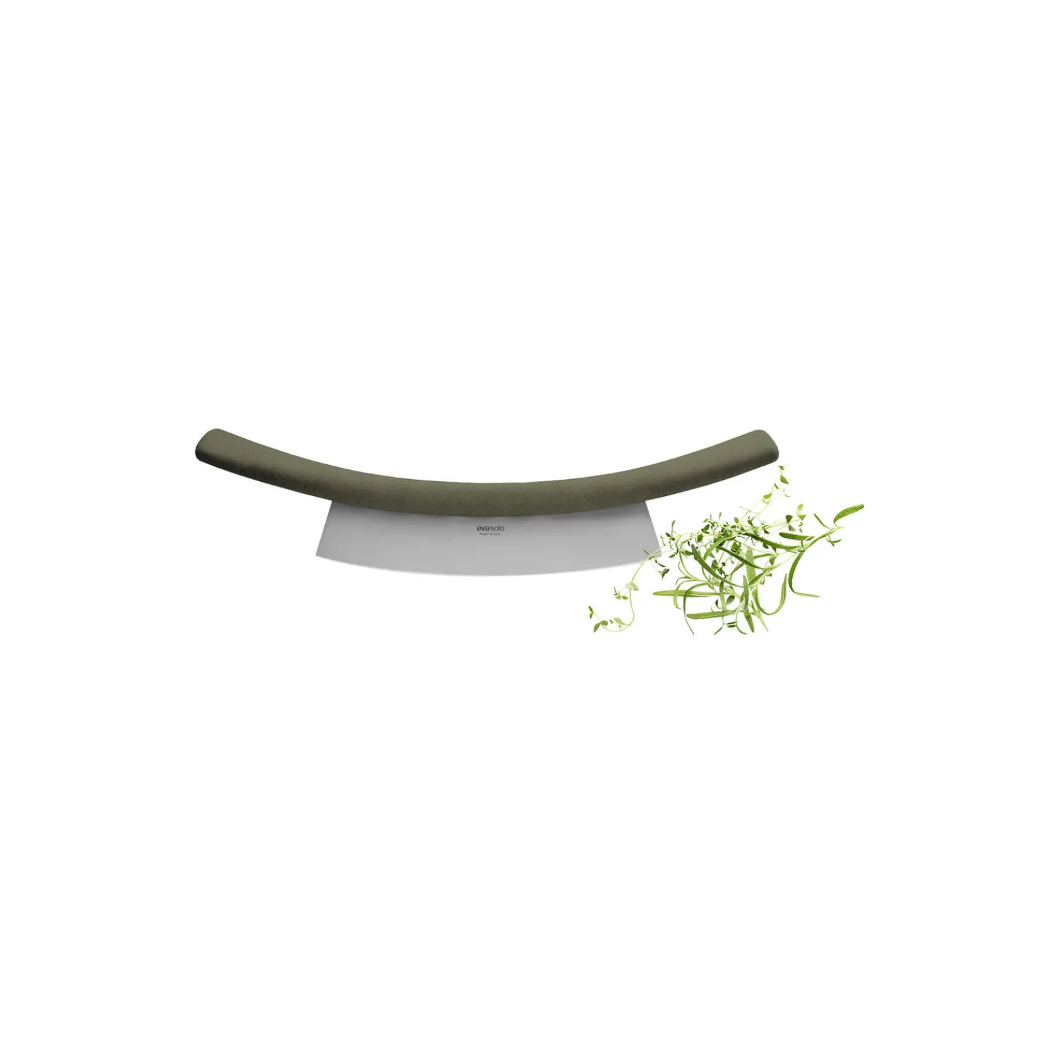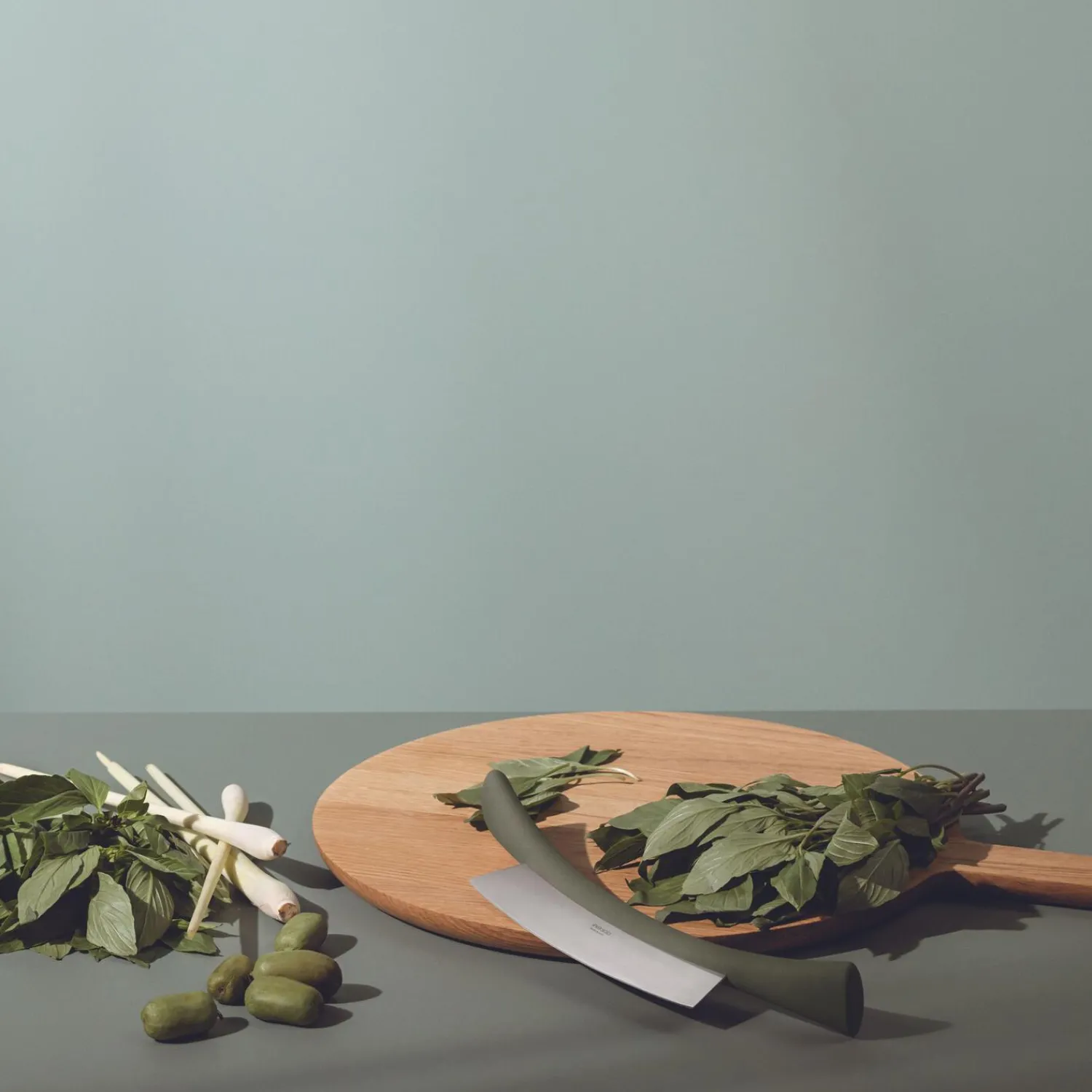 Green tools kollektionen gør det nemt at vælge det grønne køkken med en række redskaber, som gør tilberedning let og hurtig. Alle redskaber og knive er netop udviklet med fokus på tilberedning af grøntsager og frugt. Rengøringen er lige til at gå til, da alle redskaber tåler maskinopvask. Den halvmåneformede, funktionelle kniv gør hakning af grøntsager lige til at gå til. Vug blot frem og tilbage hen over for eksempel krydderurterne med knivens buede skær. Kniven er udformet med et stabilt og behageligt greb i begge ender. Vedligeholdes ved regelmæssig slibning.