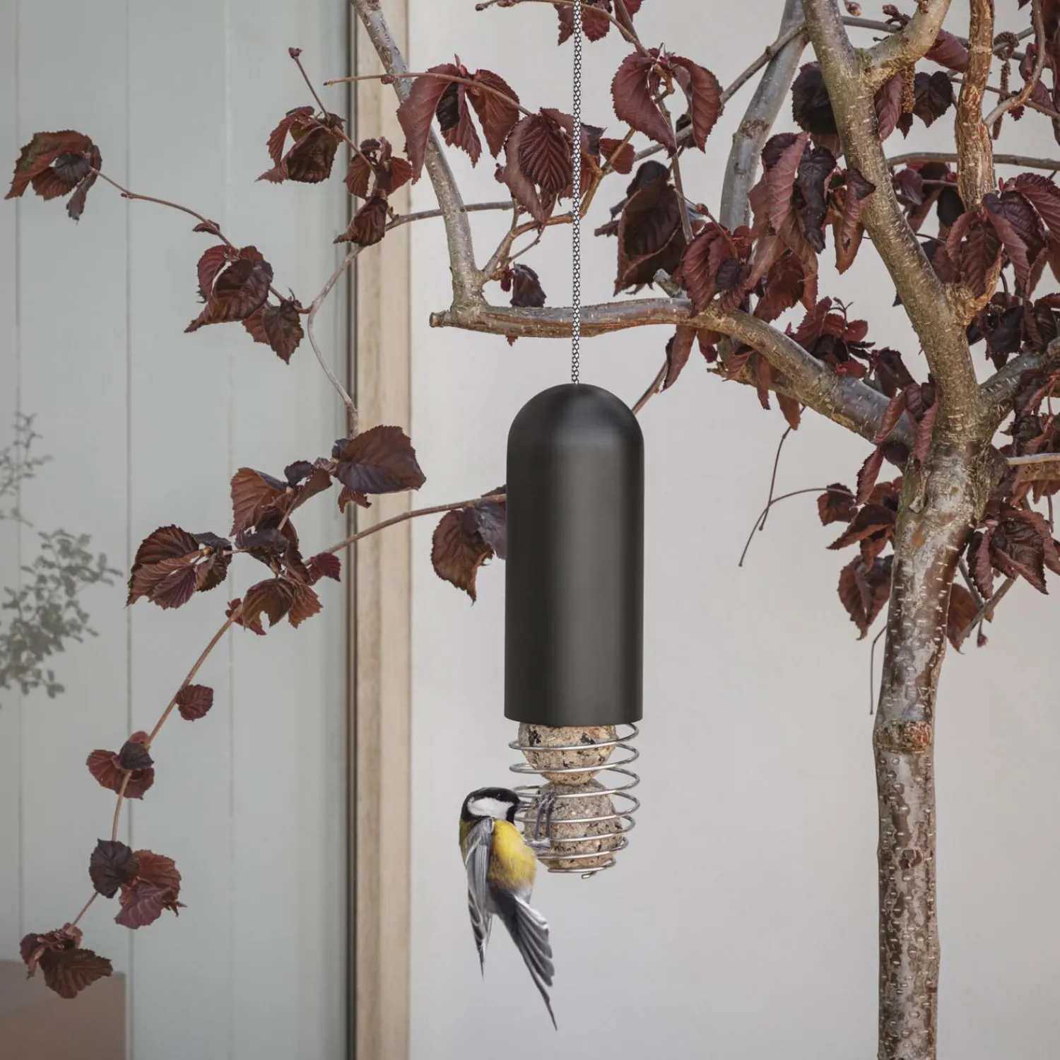 Byd småfuglene på lidt lækkert i form af mejsekugler eller fedtkugler og server dem i en hængende holder. Fuglene har dermed nem adgang til foderet, og de store fugle kan ikke flyve væk med maden. Mejsekugleholderen har plads til tre kugler, og det er nemt at se, hvornår den skal fyldes op. Løft da blot den sorte overdel. Nem montering med snor, f.eks. i et træ eller et udhæng ud for dit vindue, så du kan følge fuglenes aktivitet.