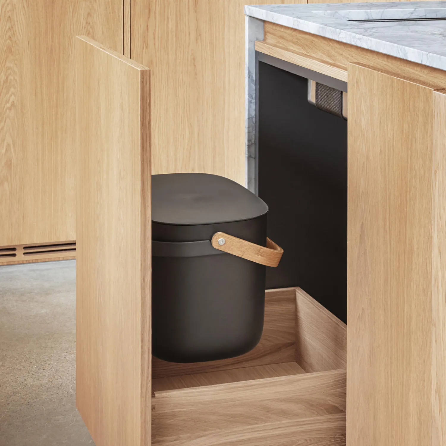 Med vægbeslaget til din Reflect Affaldssorteringsspand frigør du værdifuld gulvplads og bidrager til et mere ryddeligt køkken. Når spanden hæves fra gulvet, mindskes ophobningen af snavs og bakterier, samtidig med at den holdes uden for rækkevidde af små børn og kæledyr. Vægbeslaget gør også affaldssortering til en mere behagelig opgave, da du får nem adgang uden behov for at bukke dig ned. Vægbeslaget gør affaldssortering i selv de mindste hjem mere praktisk og æstetisk tiltalende.