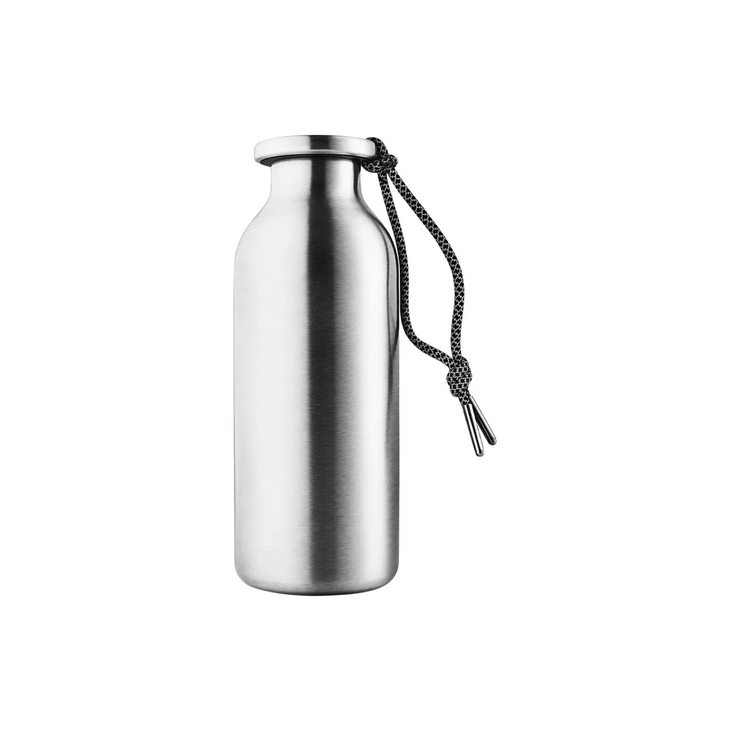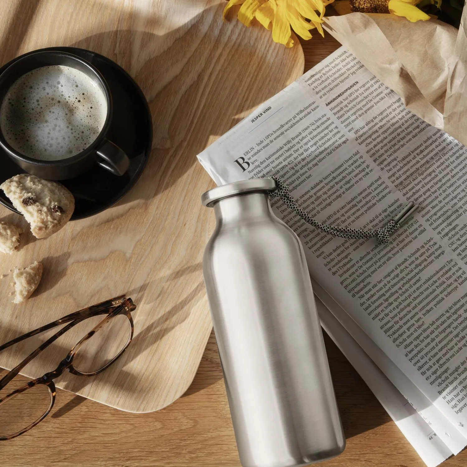Robust termoflaske med skruelåg i stilrent design. Flaskens termokonstruktion holder på temperaturen – koldt i op til 24 timer, varmt i op til 12 timer. Skruelåget er 100% tæt, så du kan have flasken i din taske, og integreret strop gør den nem at tage med på farten. Selve flasken er desuden fremstillet i rustfrit stål, der virkelig tåler hverdagens hyppige brug og slid. Tåler maskinopvask.