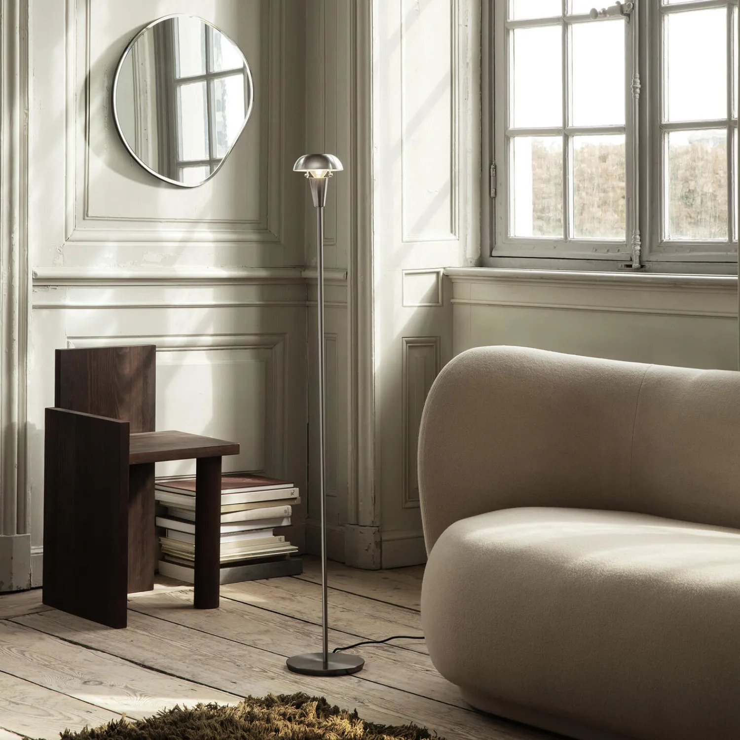 Pond-seriens organiske design forener form og skønhed og beriger dit hjem med åbne og flydende former, dette funktionelle spejl bliver dermed også et dekorativt element på din væg. De buede kanter indrammes af en slank messingramme, og spejlet kan hænges op, lige hvor du har lyst, så det får den perfekte placering på væggen i dit rum. Bemærk: spejlets metalramme har to svejsemærker på de punkter, hvor metallet er smeltet sammen.