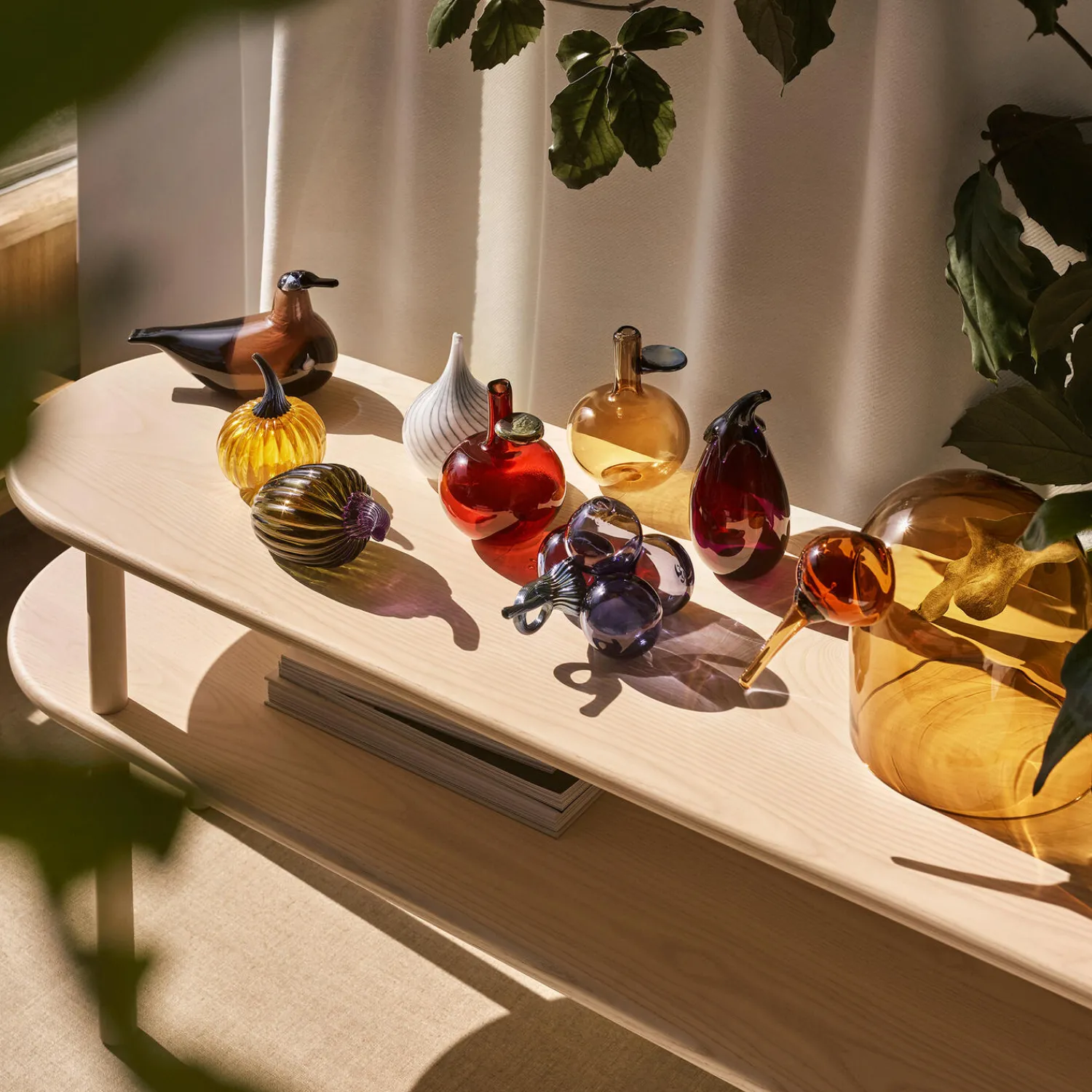 Iittala har relanceret den finske designlegende Oiva Toikkas Fruits and Vegetables-kollektion med sjove designs i elegante farver. Hvert stykke er et individuelt håndlavet, mundblæst glaskunstobjekt på Iittala Glass Factory. Aubergines fantastiske lilla glas og legesyge form viser Toikkas kreativitet. Tilføjer finurlige detaljer til ethvert interiør. Ser flot ud alene, eller saml hele haven for maksimal effekt. En god gaveidé.