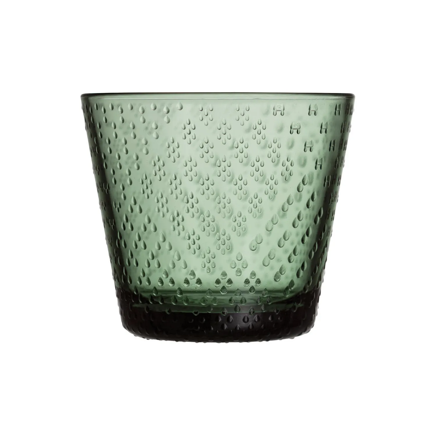 Designed by Oiva Toikka in 1970, the Tundra glassware collection is sophisticated, nostalgic and modern at the same time. The Tundra pattern consists of several smaller patterns inspired by the rugged beauty of Arctic nature. The Tundra tumbler (29 cl) lends an air of fascination to your table setting and is also perfect for special occasions. The beautiful new pine green colour highlights the delicate patterns on the tumbler. The Tundra tumbler (16 cl) makes enjoying your beverage of choice a special moment. A set includes two Tundra tumblers made at the Iittala glass factory in Finland.