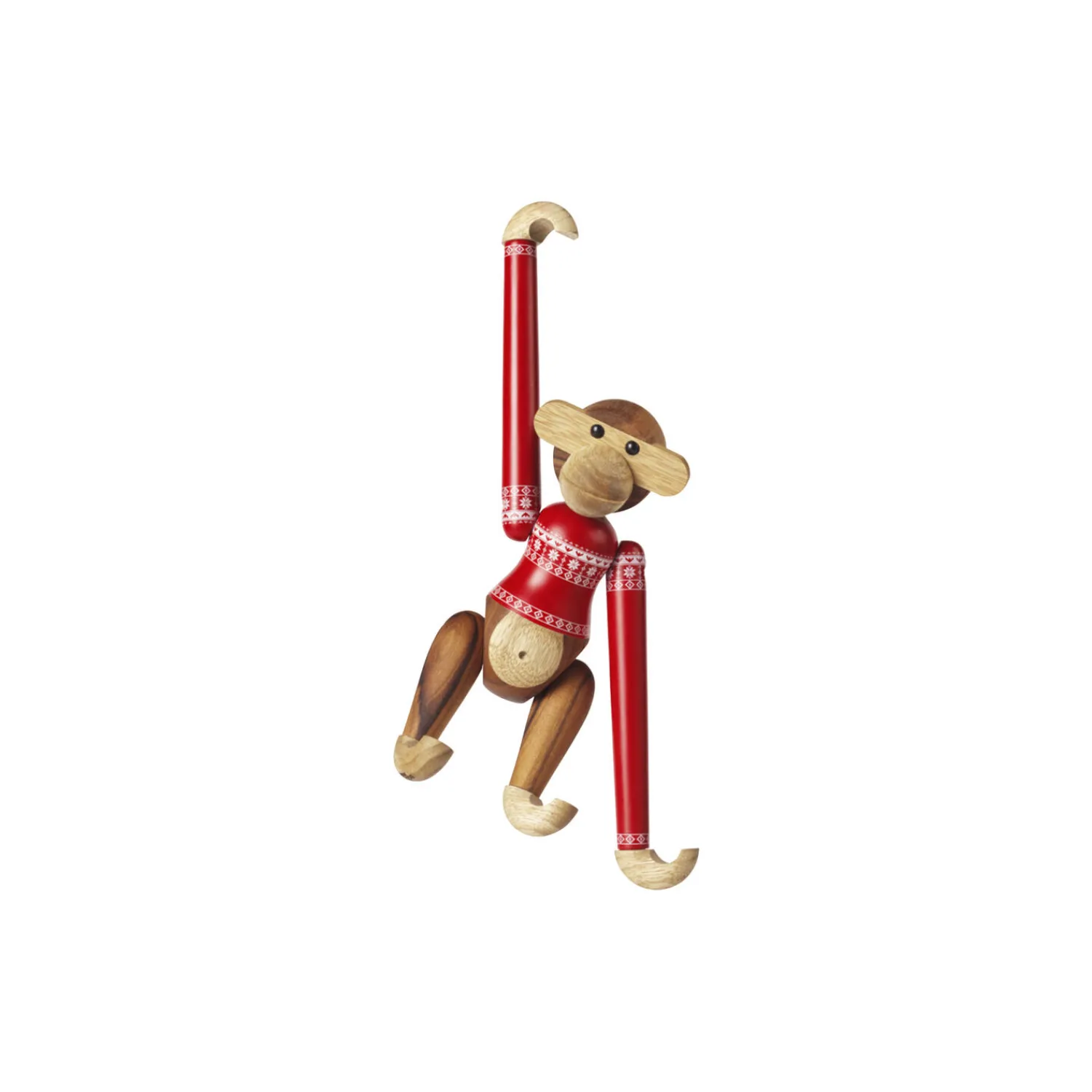 Original julemagi i et flot og moderne snit. Med den altid smilende Kay Bojesen Abe i en unik juleversion iført en klassisk rød julesweater væves historien om Kay Bojesens alletiders verdensberømte designikon og vores hyggelige juletid endnu tættere sammen. Kay Bojesen Abe Julesweater 2024 er fremstillet i FSC®-certificeret teak og kommer i både denne klassiske lille størrelse på 18,5 cm i højden og miniversionen på 9,5 cm. Begge prydes med et klassisk julemønster med de fineste julestjerner og snefnug i hvid på bryst, mave og skuldre – og med en sød lille detalje med et smalt bånd med et julerudemønster ved hver ærmekant. Trøjens røde bundfarve er malet med stor omhyggelighed, mens mønsteret i hvid er påført med print med største præcision ned til de mindste detaljer, så julesweateren får det autentiske og gennemarbejdede udtryk fuld af den sjæl og humor, der altid har været udgangspunktet for Kay Bojesens unikke håndværk og historiefortælling. Brugen af de klassiske julefarver og et ikonisk julemønster gør Aben selvskreven som et levende og legende element i en moderne indretning i julen, hvor den vil skabe smil og stil med sin finurlige fremtoning og sit farverige udseende – uanset hvor den flytter ind. Kay Bojesen Abe Julesweater 2024 er nostalgisk og nyskabende dansk design, der ydmygt og med et glimt i øjet bygger videre på Kay Bojesens ikoniske designarv og fuld af julesjov, stjerner og snefnug tilføjer et nyt kærligt kapitel til hans originale fortællinger i træ.