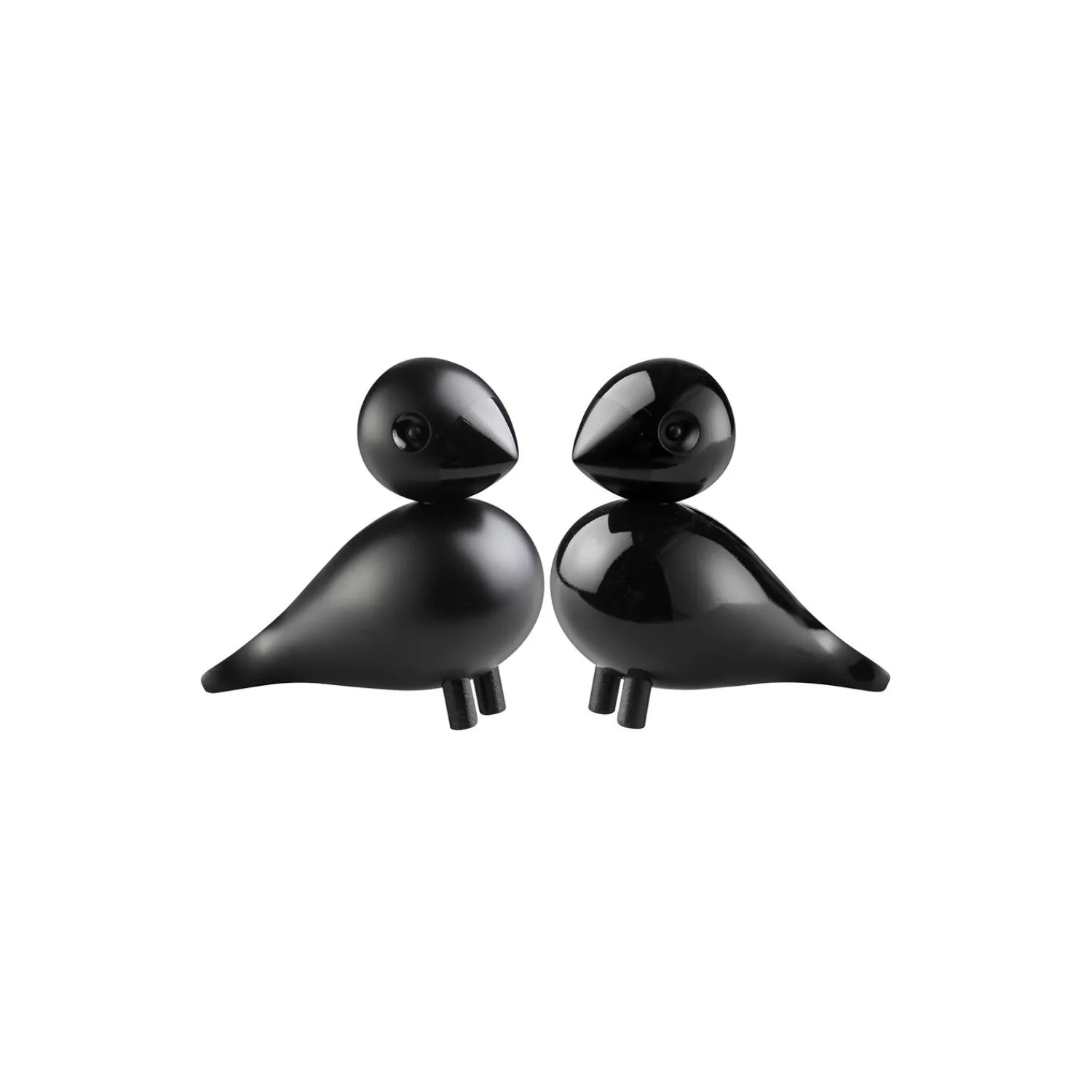 De unikke og tidløse turtelduer i sort er inspireret af den sorte Sangfugl Ravn fra Kay Bojesen. Turtelduerne er malet i sort. Den sorte farve gør turtelduerne til et smukt element i indretningen på den fineste og meget diskrete måde. Turtelduerne er fremstillet i bøg, men de er malet i et blankt og mat materiale. Denne diversitet skaber et særligt udtryk. I en indretning vil turtelduerne signalere romantik, forskellighed og samhørighed. Selvom turtelduerne har forskelligt udseende, er nærvær og kærlighed tydeligt. De søde turtelduer er perfekte som en betydningsfuld bryllupsgave. Eller til personen, der sætter pris på smukt design af høj kvalitet.