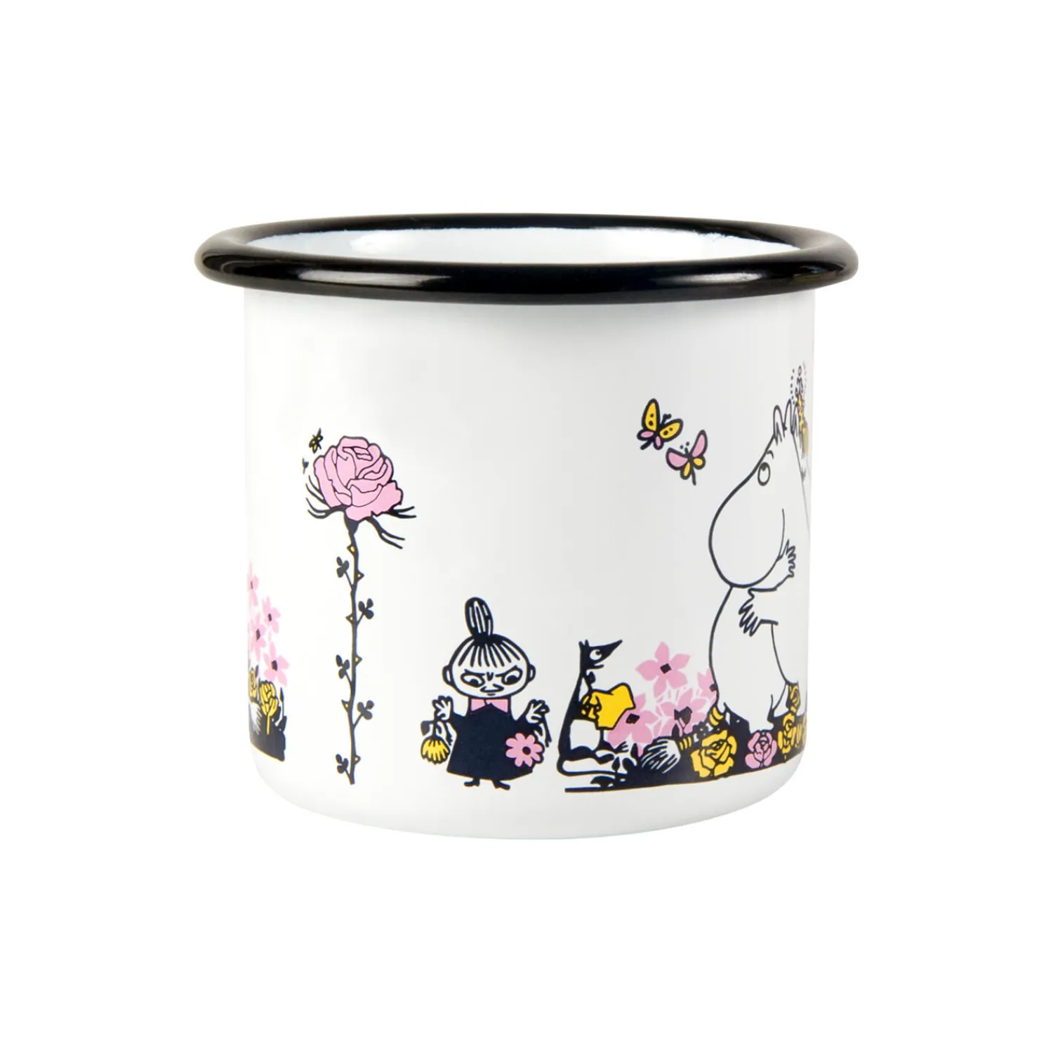 Skønt emaljekrus med et ægte mumikram på. Kruset er i en fin børnevenlig størrelse på 2,5 dl, der gør kruset anvendeligt i flere aldersgrupper. Alle emaljekrus udføres på fabrikker i Frankrig og hånd emaljeres i Kroatien. Muurla’s emaljekrus har en blød kant teknik, hvor krusets skarpe kant er bøjet helt indad for at skabe en behagelig overflade at drikke af. Emaljeprodukterne består af en kerne af kulstofstål, der er dobbeltbelagt med emalje af høj kvalitet. Alle Muurla’s emaljeprodukter er opvaskemaskine sikre, men må ikke anvendes i mikrobølgeovne.