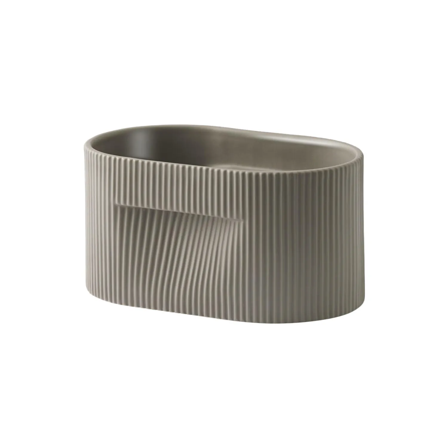 The Ridge Planter brings the elegant, sculptural expression of the Ridge vase to a versatile, functional planter, perfect for adding a touch of nature indoors. Crafted from high-quality earthenware, Ridge Planter features a matte exterior, a ribbed edge, and a glazed interior for an organic, deep look. Subtle handles on each side facilitate easy movement between spaces. Available in three sizes – size 253×153.5x130mm is ideal for small to medium plants, herbs, or succulents and perfect for windowsills, desks, shelves, kitchens, and bathrooms. Size 188x142x153mm offers a versatile and manageable option for small to medium-sized plants, while size 267x195x240mm is great for larger plants or groupings, and perfect for living rooms, corners, and entryways.