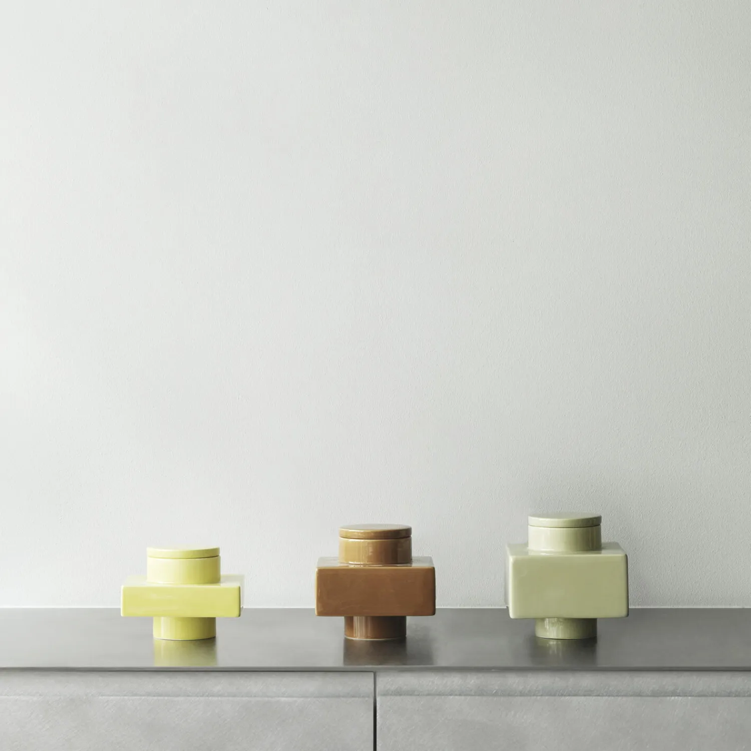 Deko Objects er en serie skulpturelle objekter, der er designet til at fremkalde kreativitet og personlige udtryk. Objekterne består af en række forskellige størrelser og farver og kan stables oven på hinanden for at skabe det ønskede udtryk. Brug Deko som et dekorativt element, som en vase eller forvandl den til en funktionel beholder til opbevaringsformål med et valgfrit låg i en matchende farve.