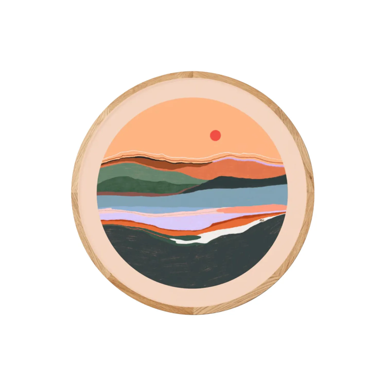 - Materiale: håndlavet cirkulært kunsttryk i egetræsramme