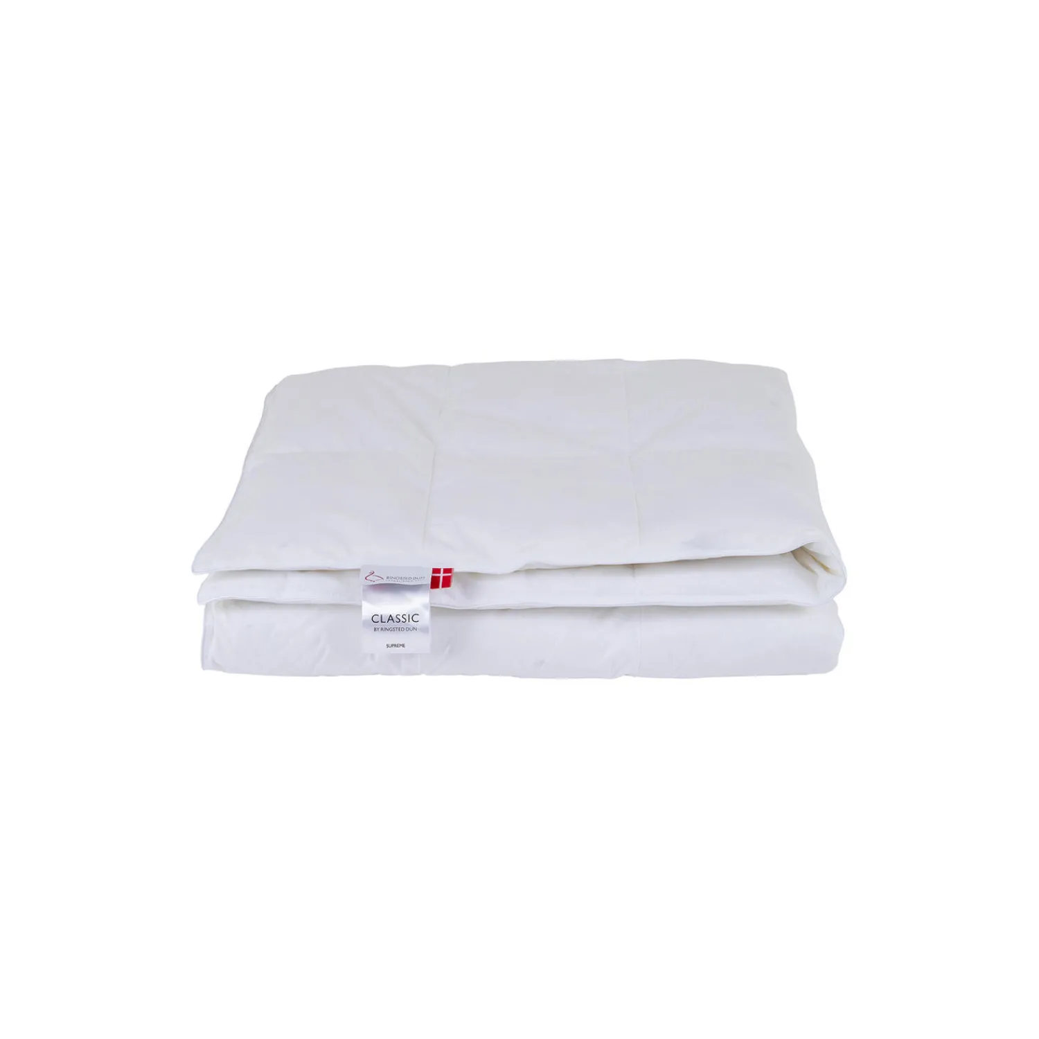 Classic Supreme lun helårsdyne med moskusdun og vår i bomuldsbatist fra Ringsted Dun. Farve: hvid. Mål: 140×200 cm. Fyldmængde: 625 g. Bæreevne over 11.