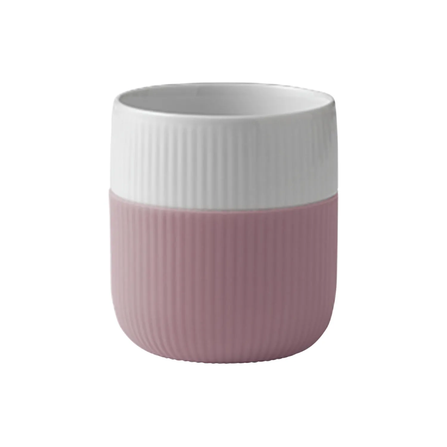 Riflet Contrast krus i porcelæn fra Royal Copenhagen. Riflet Contrast er først og fremmest en pirring af sanserne: Et livligt, sprudlende farvespil og en spændende tak til overgang fra blanke rifler i porcelænet til bløde, eftergivende rifler i silikonen. I Riflet Contrast mødes en klassisk fortid og en foranderlig nutid, hvor hvert år bringer nye farver til kollektionen. Dette forår er farven rose. Douce og luksuriøs.