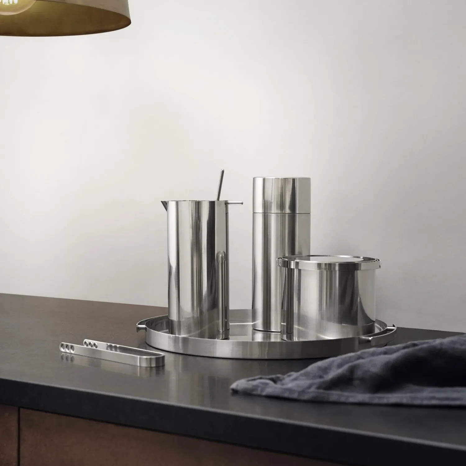 Arne Jacobsens cocktail shaker i satinpoleret rustfrit stål er skabt til at lave smagfulde drinks i hjemmebaren. Ryst drinks på elegant vis med den minimalistiske shaker, som står helt skarpt og enkelt. Låget passer præcist til beholderen og glider let på plads.