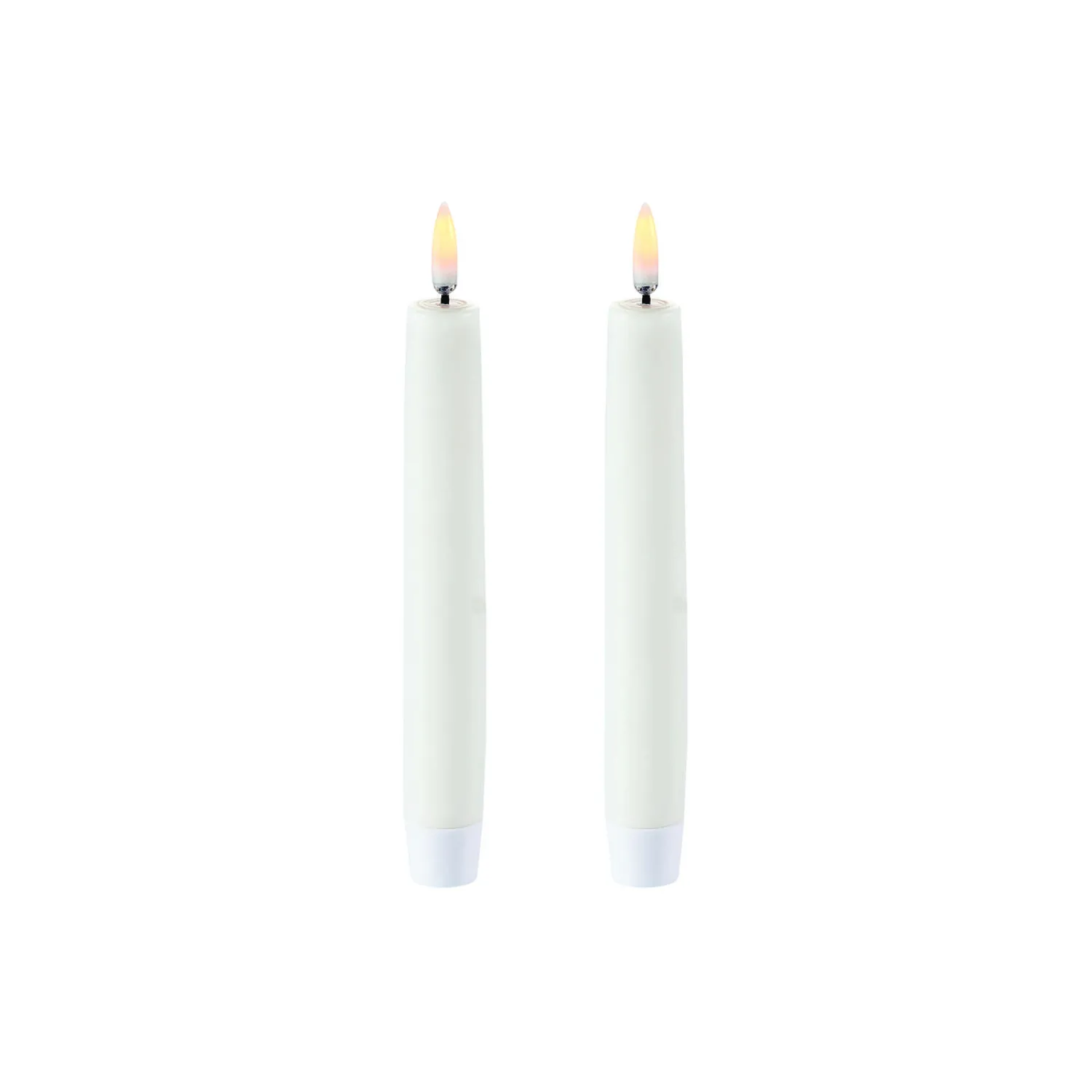 The Taper Candle stands tall under the same principles of design and purpose. All of the beauty, with none of the harm. Unscented. Two candles in pack. Built-in 6-hour Timer. Patent Pending 3D Flame. Uses 2 x AAA batteries (not incl.). 200+ hours battery life. Can be used with the Uyuni Remote Control (sold separately).