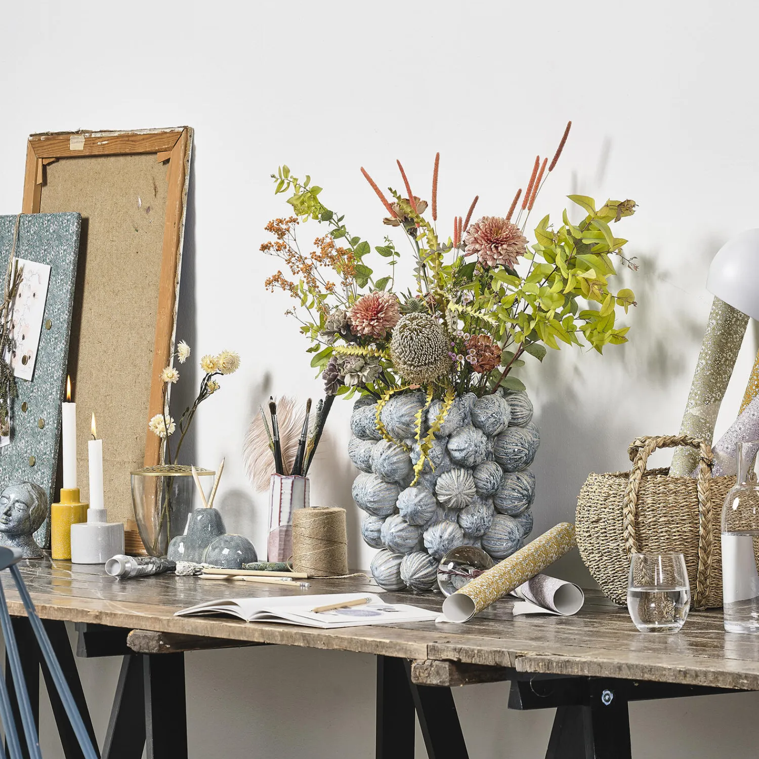 Denne vase er lavet i stentøj med en unik reaktiv glasur. Glasering og farve varierer, dette er en del af varens unikke udtryk. Glaseringen gør, at vasen ikke kan garanteres 100 % vandtæt. Placer derfor ikke vasen direkte på sarte overflader, som ikke tåler vand eller fugt. Vi anbefaler rengøring med varmt vand og efterfølgende overtørring med en blød klud. Lad vasen lufttørre efter brug og rengøring, så fugt kan fordampe. Leveres i gaveæske.