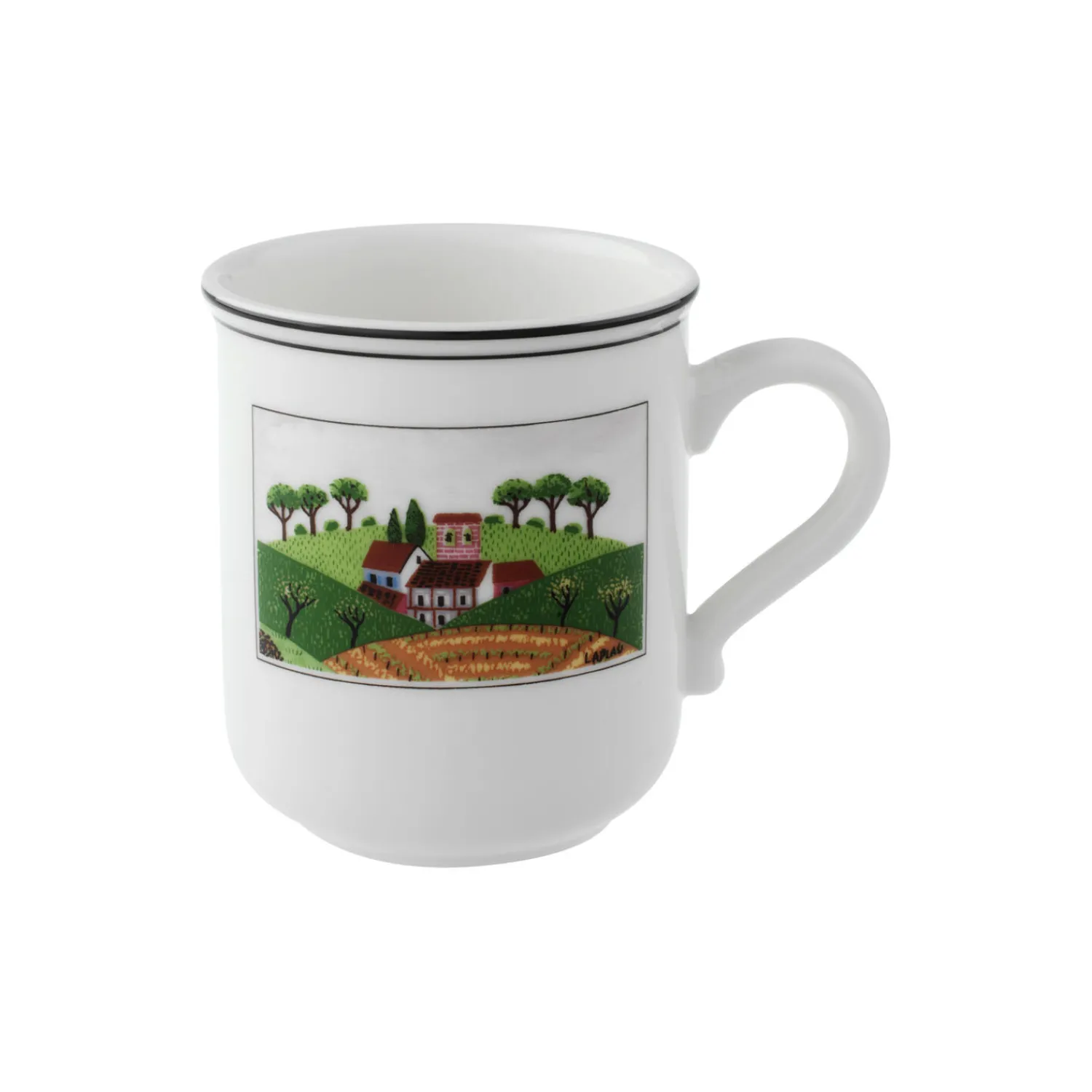 This mug forms part of Villeroy & Boch’s folk art design collection Design Naif and shows one out of six different mug designs. The rustic scenes featured on the individual items of this collection will add a touch of charm and atmosphere to any table. Designed by the Corsican artist Gérard Laplau, the decor has made an important contribution to establishing Design Naif as an art form all over the world. This premium porcelain is ideal for everyday use on the breakfast table or for an afternoon coffee break. Dishwasher safe and microwave safe.