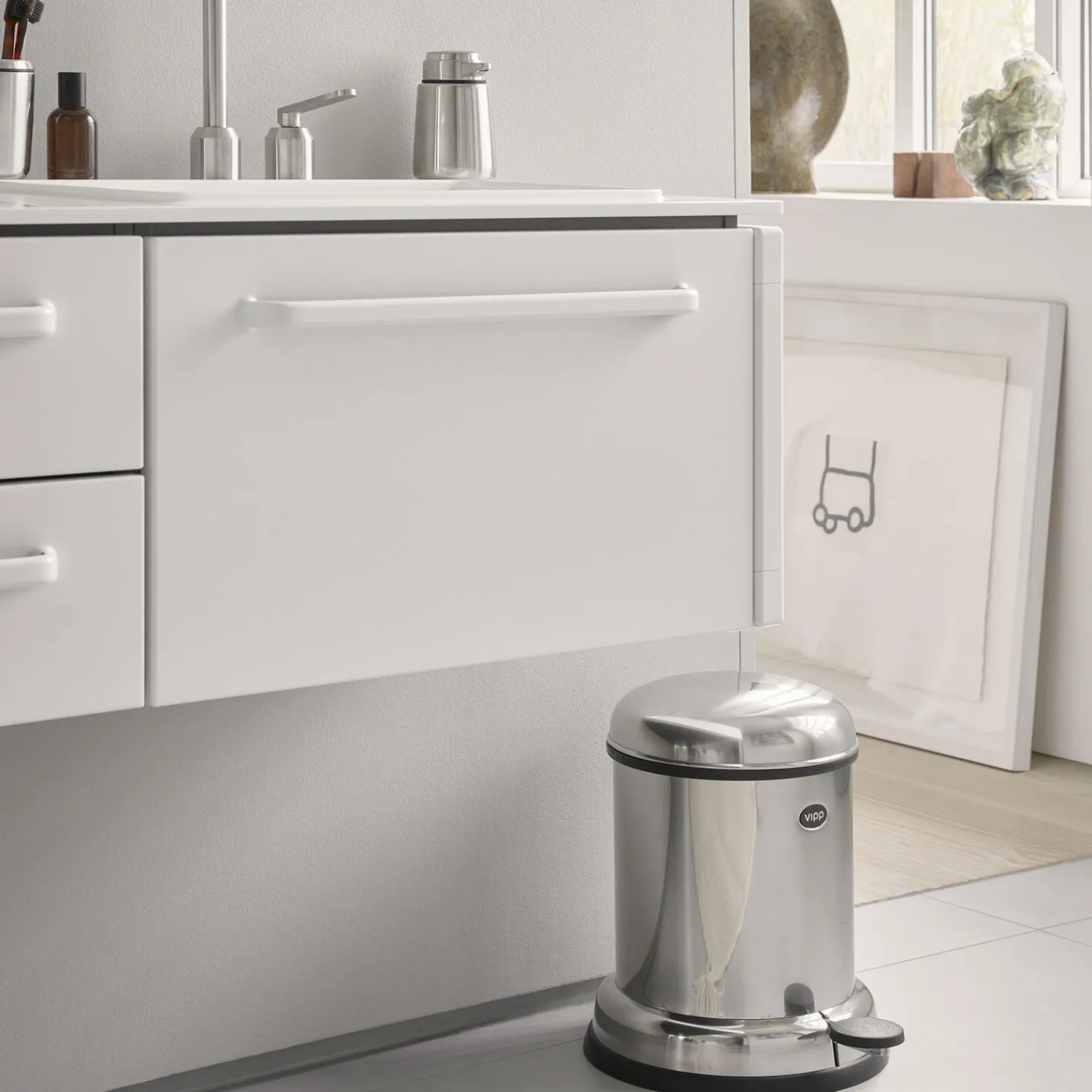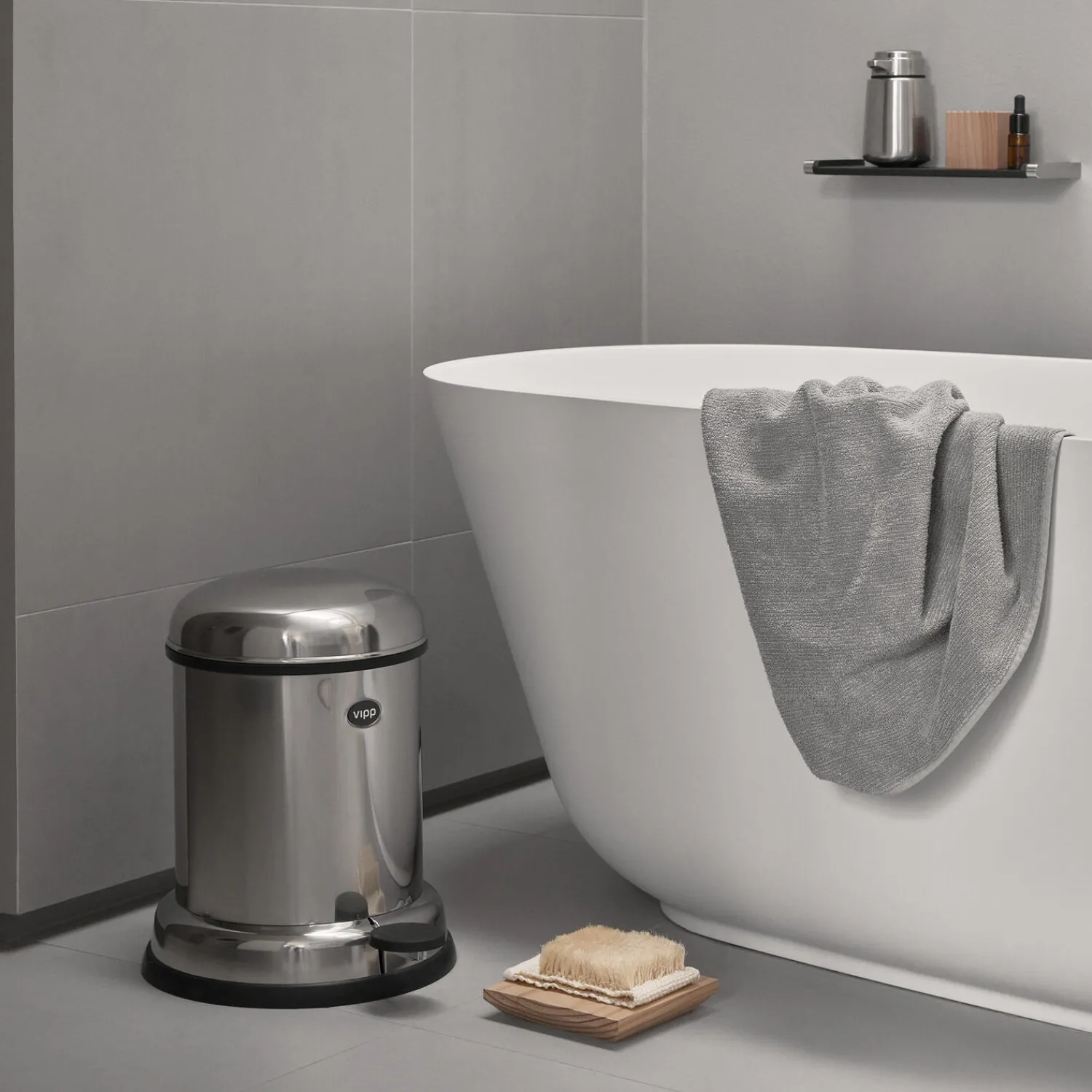 Vipp14 pedalspanden er en lille skraldespand til badeværelset. Denne pedalspand er udstyret med en udtagelig inderspand, et låg der sikrer lufttæt tillukning og en dæmpemekanisme, der lukker spandens låg i en blød bevægelse. En gummiring i bunden beskytter gulvet.