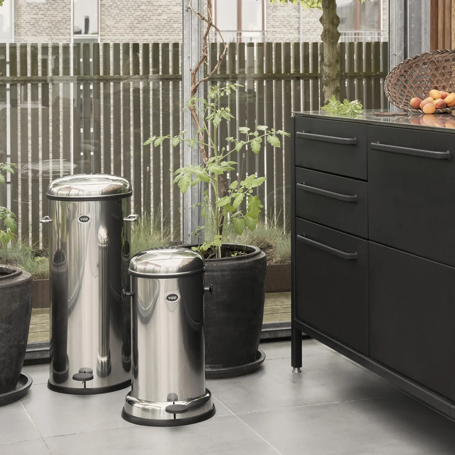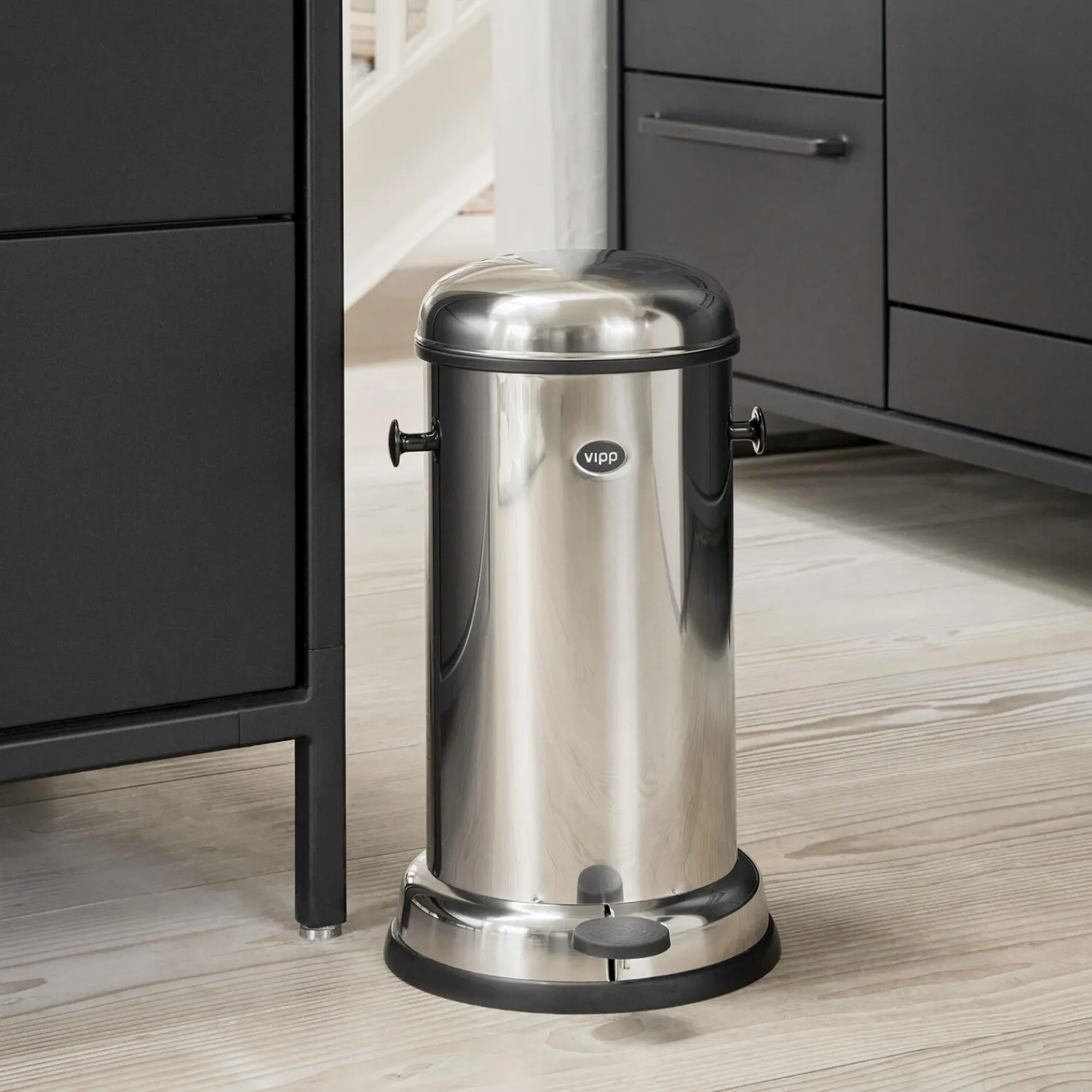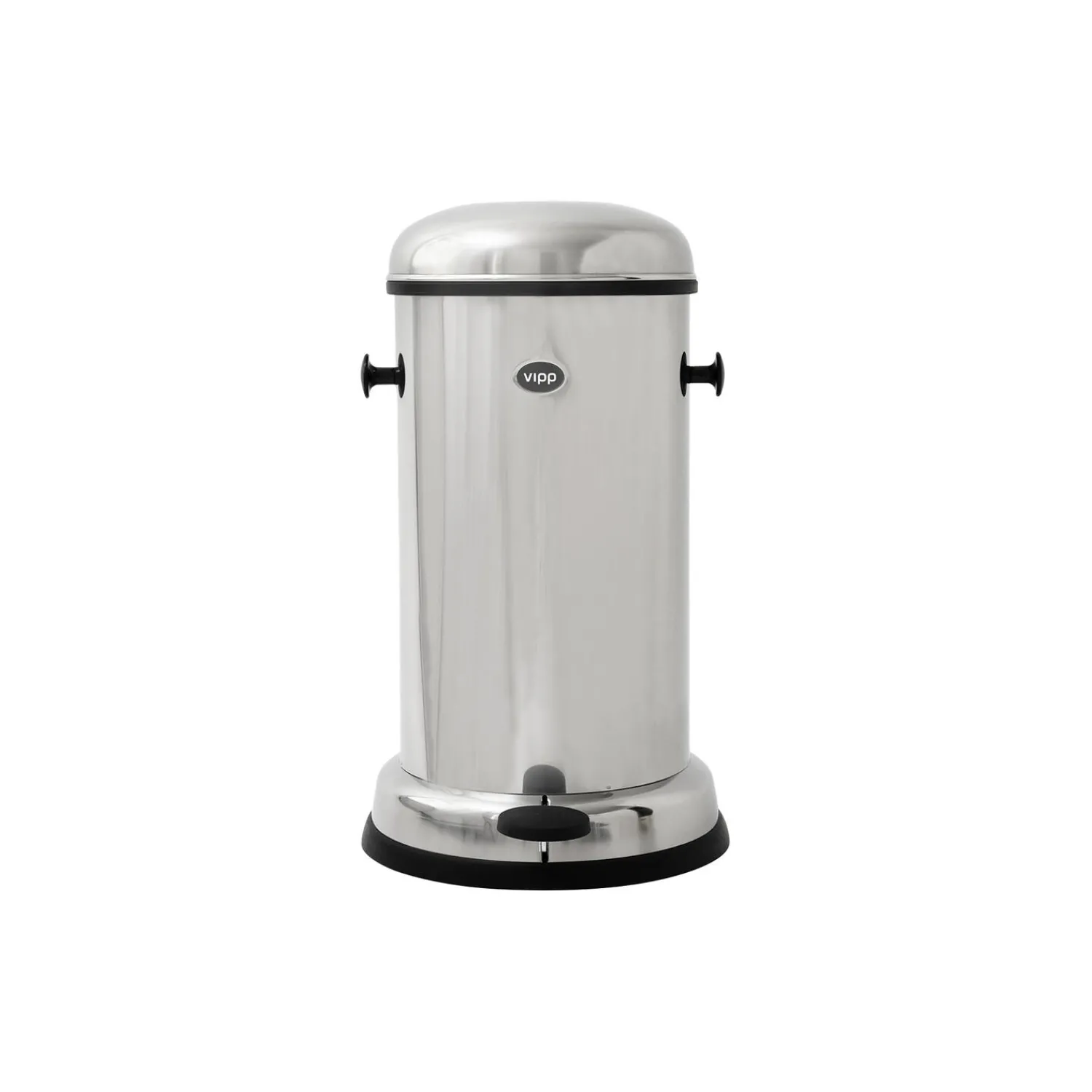 Vipp15 pedalspanden er en mellemstørrelse skraldespand til køkkenet, kontoret eller badeværelset. Denne pedalspand er udstyret med en udtagelig inderspand, et låg der sikrer lufttæt tillukning og en dæmpemekanisme, der lukker spandens låg i en blød bevægelse. En gummiring i bunden beskytter gulvet.
