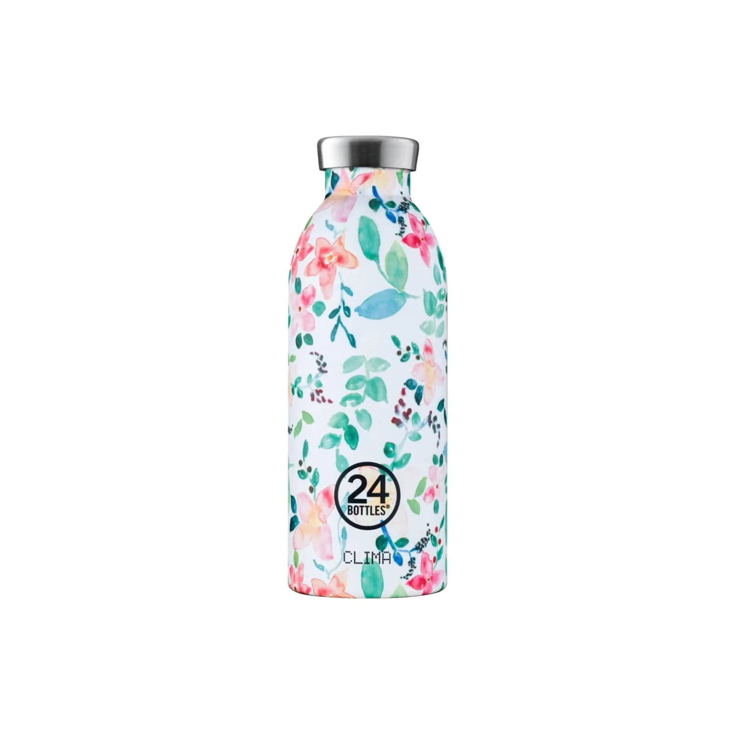 Clima termoflaske i rustfrit stål fra 24Bottles. Farve: little buds. Mål: H: 20,4 x Ø 7,3 cm. Indeholder: 500 ml.