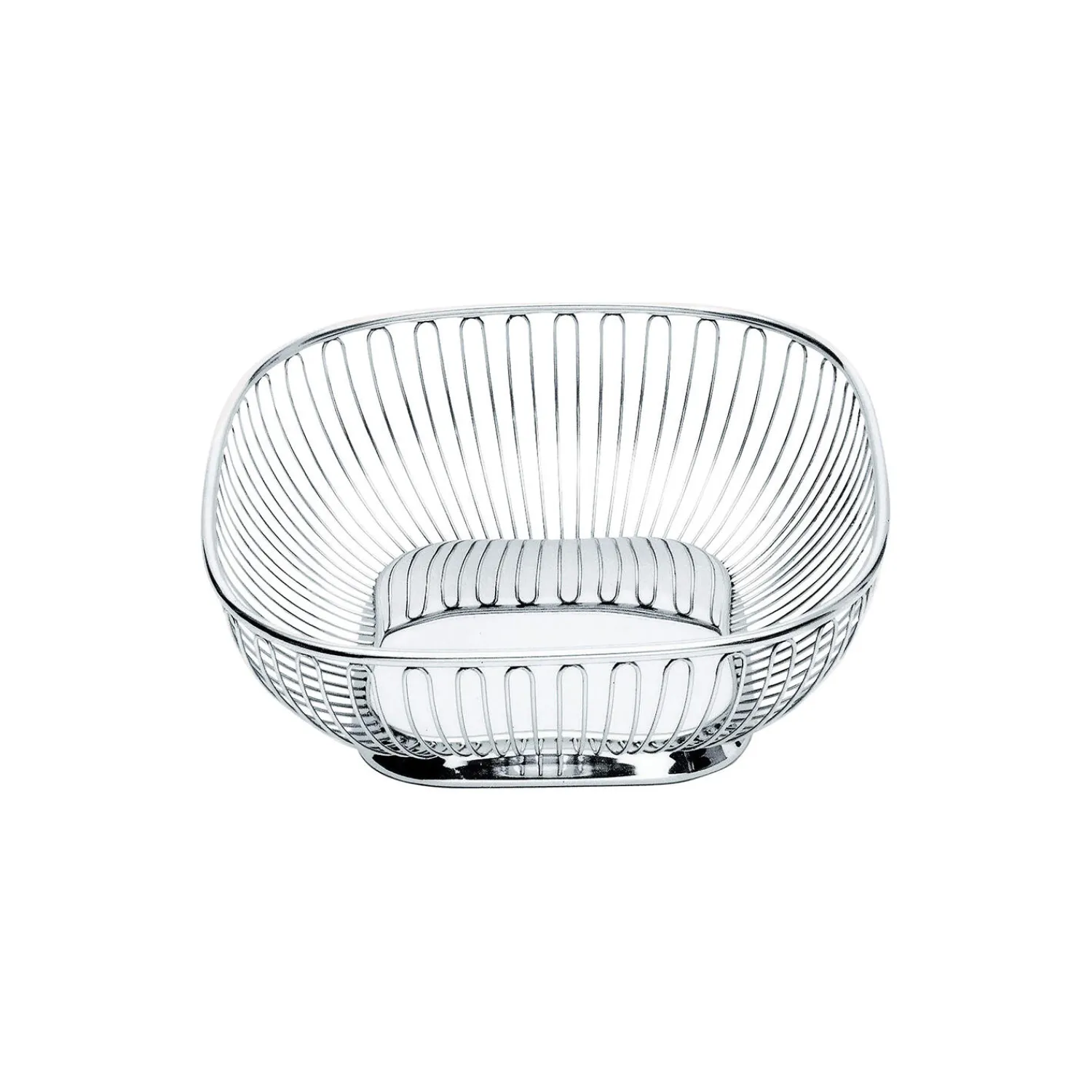 Firkantet trådkurv i blankpoleret stål fra Alessi. Farve: stål. L: 23 x B: 23 cm. Design: Ufficio Tecnico Alessi.