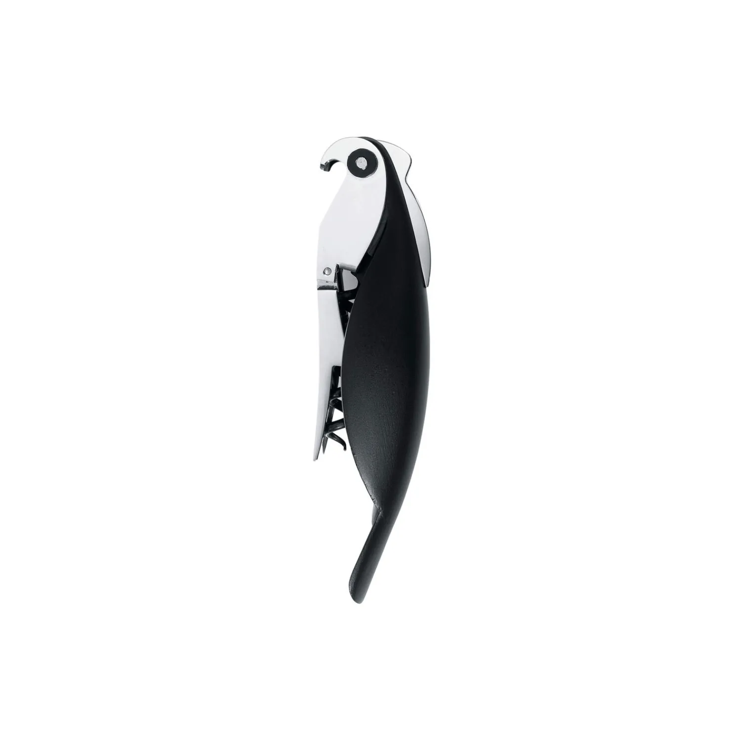 Sommelier Parrot proptrækker i støbt aluminium og polycarbonat. Farve: sort. H: 13 x L: 3 x B: 2,5 cm. Design: Alessandro Mendini.