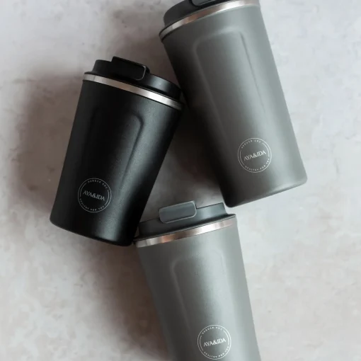 CUP2GO er produceret i 1. klasses fødevaregodkendt rustfrit stål – God Termo-teknologi = ingen kondensering hverken indeni og udenpå, Bred åbning (8,5cm) til nem påfyldning. Låget holder 100% tæt.