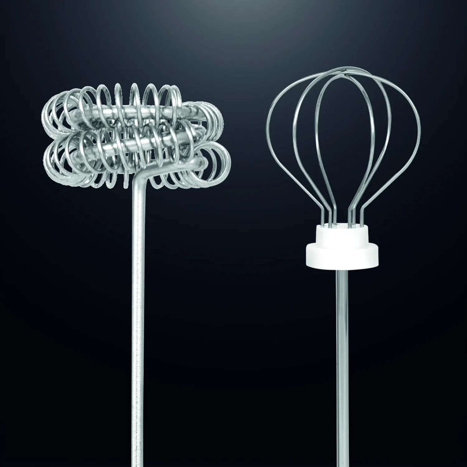 TRE HASTIGHEDSNIVEAUER, Skift hastighed efter ønske med en enkelt knap på håndtaget. USB-OPLADER, indbygget og let genopladeligt batteri. UDSKIFTELIGE PISKEHOVEDER, Afhængigt af tilberedningen kan du vælge enten det dobbelte piskeris eller ballonpiskeriset for at opnå de bedste resultater. GARANTERET RESULTAT, med mælk og de fleste vegetabilske drikke*. Den er også perfekt til at piske æg og lave proteinshakes, milkshakes, cocktails og smoothies.