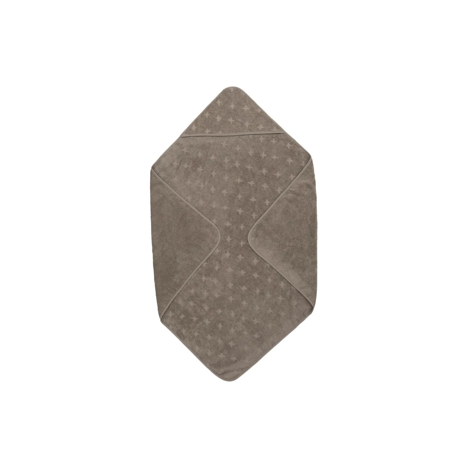 Babyhåndklæde med hætte og krydsmønster. Dejlig blødt og perfekt til de små da man kan pakke dem godt ind fra top til tå. 100 x 100 cm. Produktet er GOTS organic- certificeret, hvilket betyder at bomulden er certificeret økologisk, og at der i alle andre processer som farvning, strikning og syning er taget de strengeste hensyn til miljøet. GOTS er internationalt anerkendt som den førende standard for forarbejdning af tekstiler af økologisk bomuld. Derudover tages der også hensyn til arbejdsforholdene, hos dem der producerer tøjet. Økologisk bomuld 100%