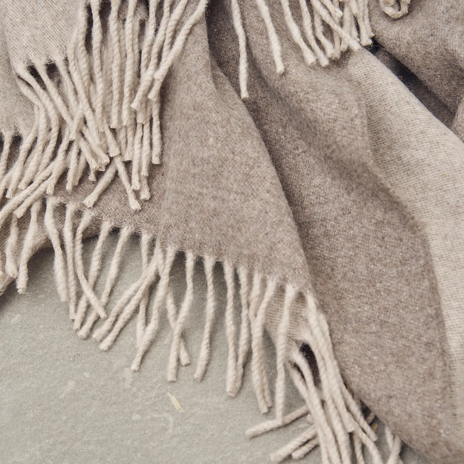 CALM throw is 100% recycled and 100% natural. Made from recycled wool and recycled cashmere in Italy.With its versatile, classic look and fine fringes, it adds a touch of elegance and softness to your home.Beautiful two-toned natural colors, which will perfectly match any room in your home – a lovely piece of long-lasting interior, you will love for years to come. We are incredibly happy to have started a production with recycled cashmere and wool in Italy. The fine materials are recycled, woven or knitted into new beautiful products.Italy is known for amazing craftsmanship and their ability to recycle materials is unique.CALM is made from 80% wool and 20% cashmere. Recycled materials, that have been carefully collected, transformed into small fibers, spun into the finest yarn, and woven into a beautiful, conscious product, ready to embrace a new owner.Many manufacturers use polyester material when recycling wool and cashmere. We do not – our products are 100% natural and comply with international standards for recycling. Reduce – Reuse – RecycleReusing materials not only reduces the waste sent to landfills, but also helps to conserve energy and resources that would otherwise be used to produce a new item. By reusing materials, we can help mitigate the negative effects of climate change and make a positive impact on the planet. Love to People & PlanetSize guide130 x 180 cmMaterial80:20 wool:cashmere CALM comes in a beautiful box in recycled FSC-certified carton paper, with the CARE BY ME logo on.