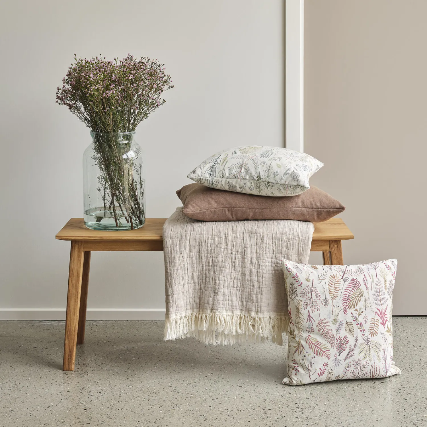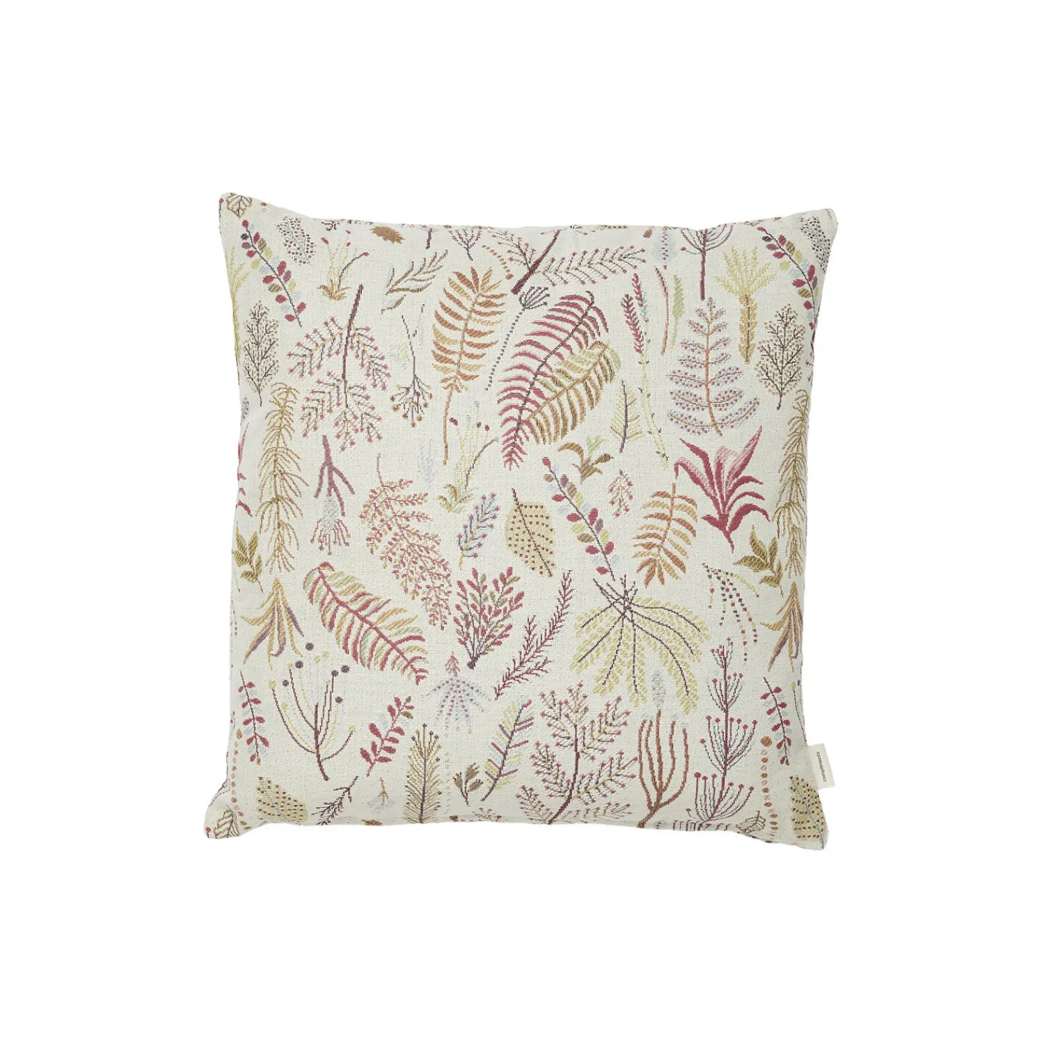 Som en eng af smukke blomster præger det fineste, poetiske mønster Botanica puden, og skaber et charmerende og roligt udtryk. Den multifarvede pude er vævet i jacquard.