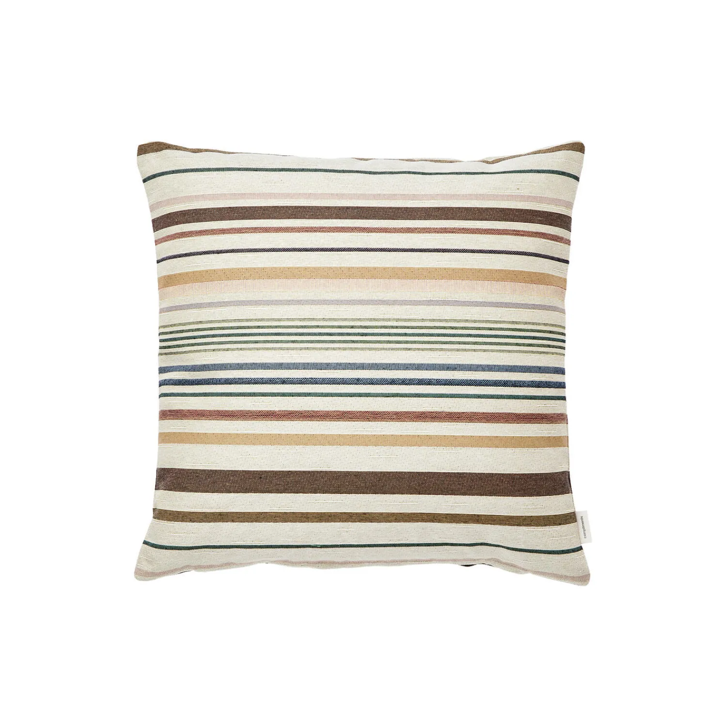 En elegant og klassisk pude i smuk jacquard. De asymmetriske striber i et harmonisk farvespil skaber et tidløst udtryk som står smukt til enhver indretning.