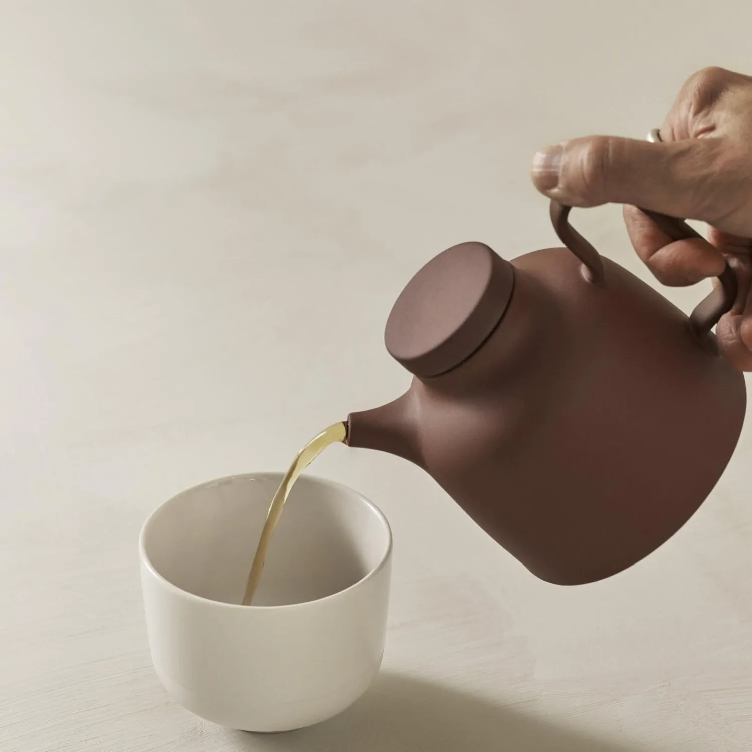 Carina Seth Andersson has once again managed to balance perfection and particularity in her new additions to Sand, her series of stoneware originally conceived for Nationalmuseum in Stockholm. The different objects are abstract yet familiar, alluding to age-old traditions refined to perfection. ‘There is a moment of surprise when you lift the lid,’ says Carina Seth Andersson. ‘The secrets of the chef unveiled! Together these earthenware objects will create a whole little landscape on the table.’ The trend to bring forward a multitude of different dishes for the table certainly does require the stage be set with a variety of vessels. Glazed on the inside, raw but softly polished on the exterior, the three black and clay-colored earthenware canisters are available in three different sizes.