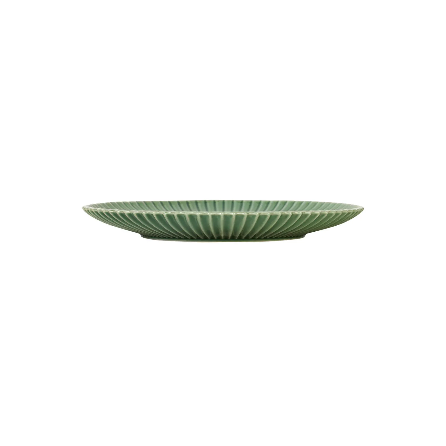 Kendetegnet ved vores tallerken er de buede former, der kun kan opnås ved håndlavet produktion. Plate kan bruges både som serveringsfad og som tallerken. Tåler opvaskemaskine og mikrobølgeovn.