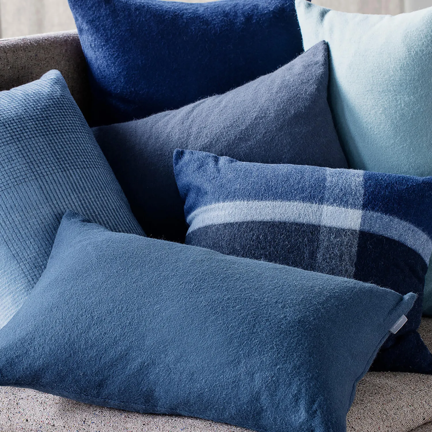 Hvor hav og himmel mødes. Horizon pudens design skifter fra lys til mørk på en elegant, smuk og naturlig måde. Et utroligt smukt stykke håndværk – et sandt vidnesbyrd om en peruviansk vævers talent. Horizon kollektionen består af både plaider og puder i en række utrolig smukke farver.Horizon puden er fremstillet af 100% genanvendte fibre.Puden er vævet af fantastisk blød genanvendt alpakauld og fåreuld. At væve tekstiler af alpakauld er en tradition i Peru, der går tilbage til Inka-tiden. Alpakafibre er blødere, mere slidstærke og varmere end andre naturfibre. Puden fnugger minimalt og bevarer det flotte udtryk i mange år frem. I puden er der anvendt 100% bæredygtige fibre. Elvang er fair trade certificeret på højeste niveau hos World Fair Trade Organization (WFTO). Det er en garanti for, at puden er fremstillet under ordentlige vilkår både for miljø, mennesker og dyr.Materiale: 50% alpakauld, 40% fåreuld & 10% andre fiberVægt: ca. 130 gramStr.: 40×60 cmPuden sælges uden pudefyld. Tænk bæredygtigt og genanvend dit gamle pudefyld. Pudefyld kan også tilkøbes, vores pudefyld er allergivenligt.Pudebetrækket skal renses. Fyldet kan vaskes ved 60 grader, og genvinder sin fylde, når det tørretumbles