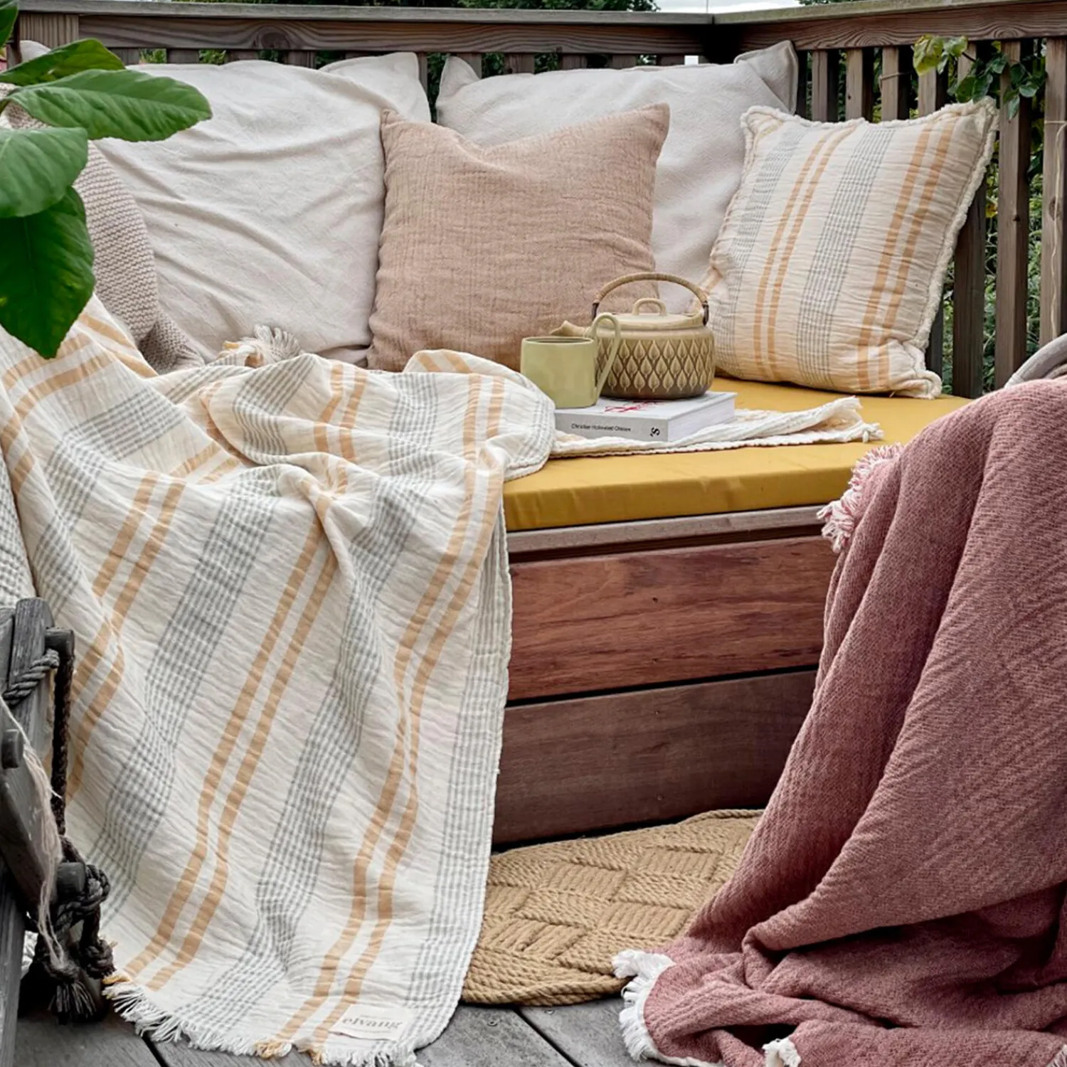 Vores Iris plaid-kollektion er produceret i luksuriøs økologisk GOTS certificeret bomuld. Iris er et behageligt og dekorativt element i enhver indretning med dens fantastisk bløde bomuld og det dynamiske mønster. De glade farver gør denne kollektion perfekt til alle livets aspekter det være sig på den solrige terrasse og i haven og tilfører den helt særlige sommerlige følelse.Elvang bomuldskollektioner er produceret i ren GOTS certificeret økologisk bomuld, hvilket gør vores plaider bløde og åndbare. Produkterne produceres bæredygtigt i Portugal på en GOTS certificeret fabrik. GOTS står for ”Global Organic Textile Standard”. Dette er en garanti for, at vores plaider er fremstillet i henhold til de miljømæssige og ansvarlige standarder. Vores bomuldsprodukter indeholder ingen skadelige kemikalier og den økologiske bomuld er allergivenlig.Elvang er fair trade certificeret på højeste niveau hos World Fair Trade Organization (WFTO). Det er en garanti for, at vores produkter er fremstillet under ordentlige vilkår for miljø, mennesker og dyr.Materiale: 100% organisk bomuldVægt: ca. 810 gStr. 130×215 cmKan vaskes v/40 grader