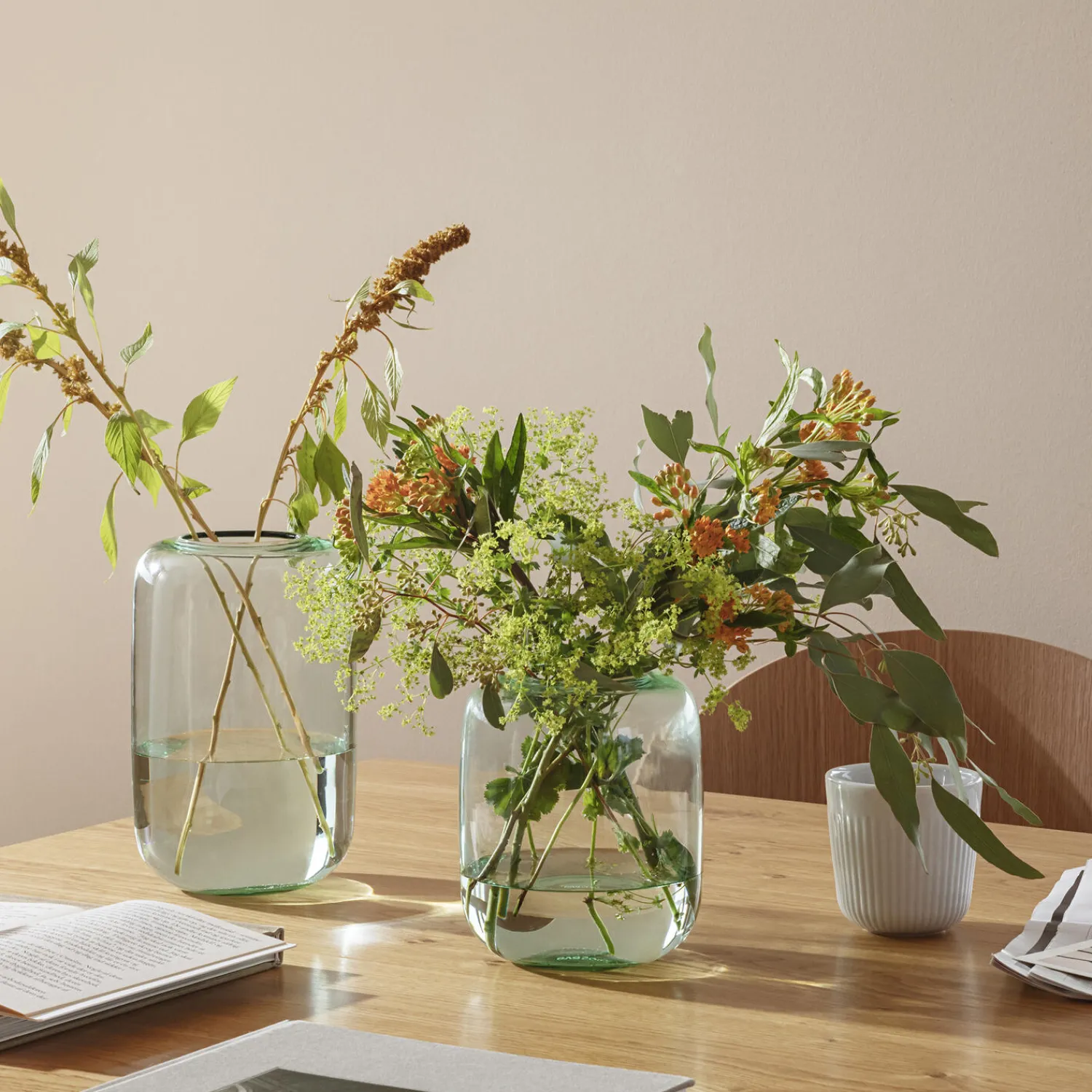 Selv uden årstidens blomster eller grene er Acorn glasvasen noget helt særligt. Med sit organiske og enkle ydre kommer vasen til sin ret i ethvert hjem. Praktisk indsnævring i vasens top får buketter til at stå pænt med smuk refleksion af lyset i glasset. Vasen er også dekorativ med blot en enkelt afskåret blomst.