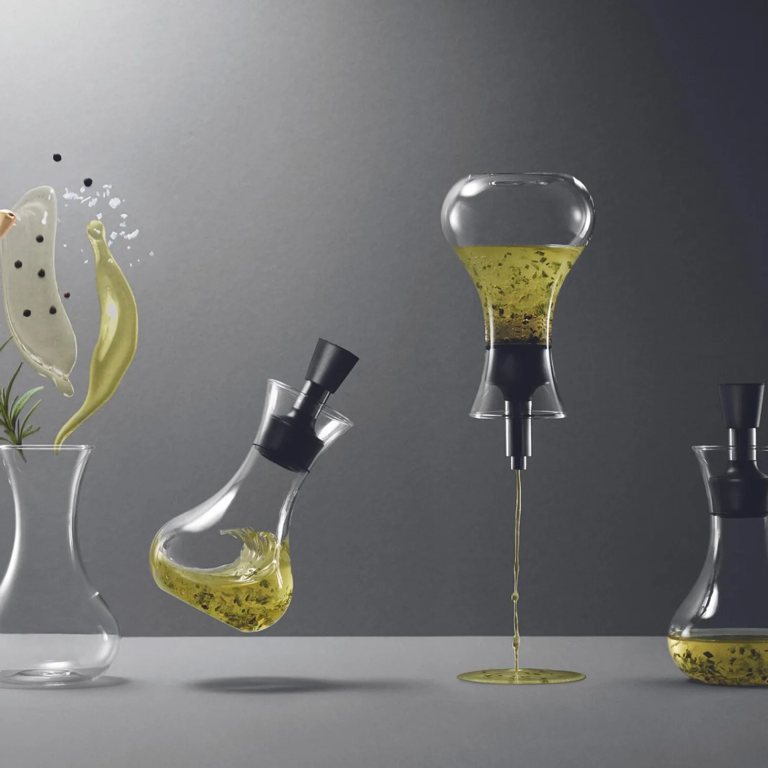Flere ynder at lave sin egen dressing, og så er det en fordel at have det rigtige grej. Med Eva Solo Dressingshaker kan du både lave og servere din dressing, og hvis der bliver noget tilbage påsættes den medfølgende prop og sættes i køleskabet. Proppen sikrer, at dressingen ikke får smag fra andre ting i køleskabet. Dressingshakerens drypfrie hældetud sikrer, at dressingen ender på salaten – ikke på bordet. Den er ganske enkel at bruge: fyld i, ryst godt, servér. Et produkt, som kan bruges både til at lave dressingen i, men som også er så elegant, at du sagtens kan sætte den på bordet til servering. Dressingshaker er fremstillet i borosilikatglas, og den tåler både varme og kolde væsker. Den kan derfor anvendes i mikroovn – husk dog at tage hældetuden af imens. Den drypfrie hældetud er fremstillet af rustfrit stål med silikone, og proppen er af silikone. Alle dele tåler maskinopvask.