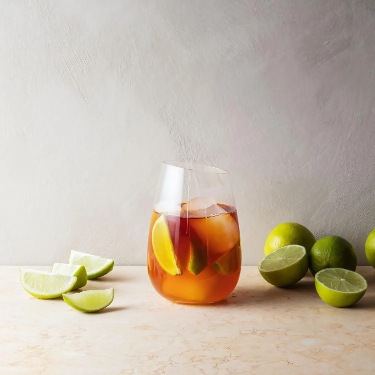 Glasset med sin ikoniske skrå kant komplementerer enhver borddækning og giver både stil og karakter til hverdagsbordet såvel som til festbordet. Glasset har mange anvendelsesmuligheder og er velegnet til servering af eksempelvis vand, juice, saft, smoothies, drinks eller som et hverdagsvinglas. Glasset er let at rengøre og tåler maskinopvask på glasprogram.
