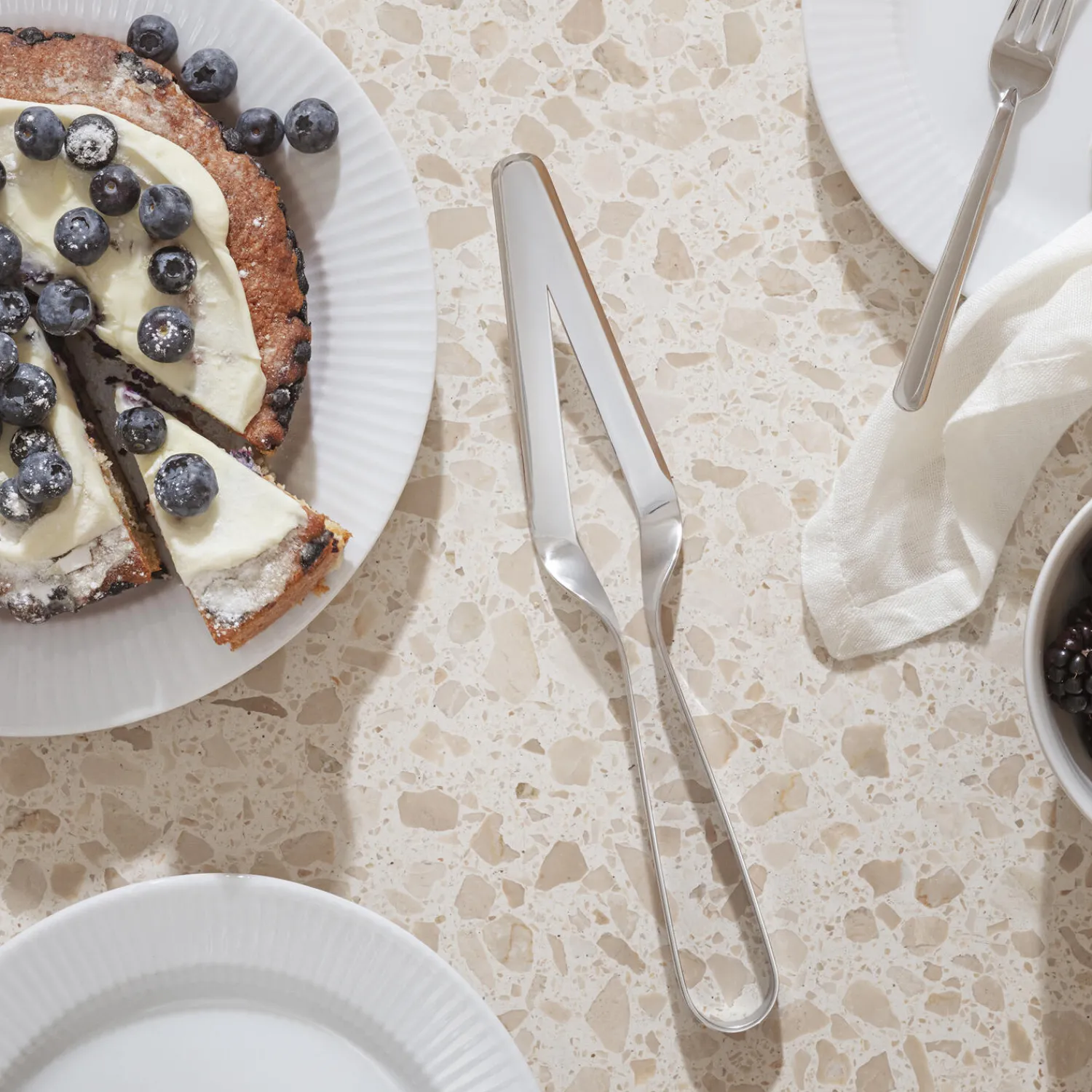 Skær kagen for med en stilfuld kagespade – den perfekte gave til brudeparret og et stilfuldt match til ethvert kagebord. Spaden er udformet i ét stykke stål med skær på begge sider og et elegant håndtag, der ligger godt i hånden. Kagespaden er nem at rengøre. Tåler maskinopvask.