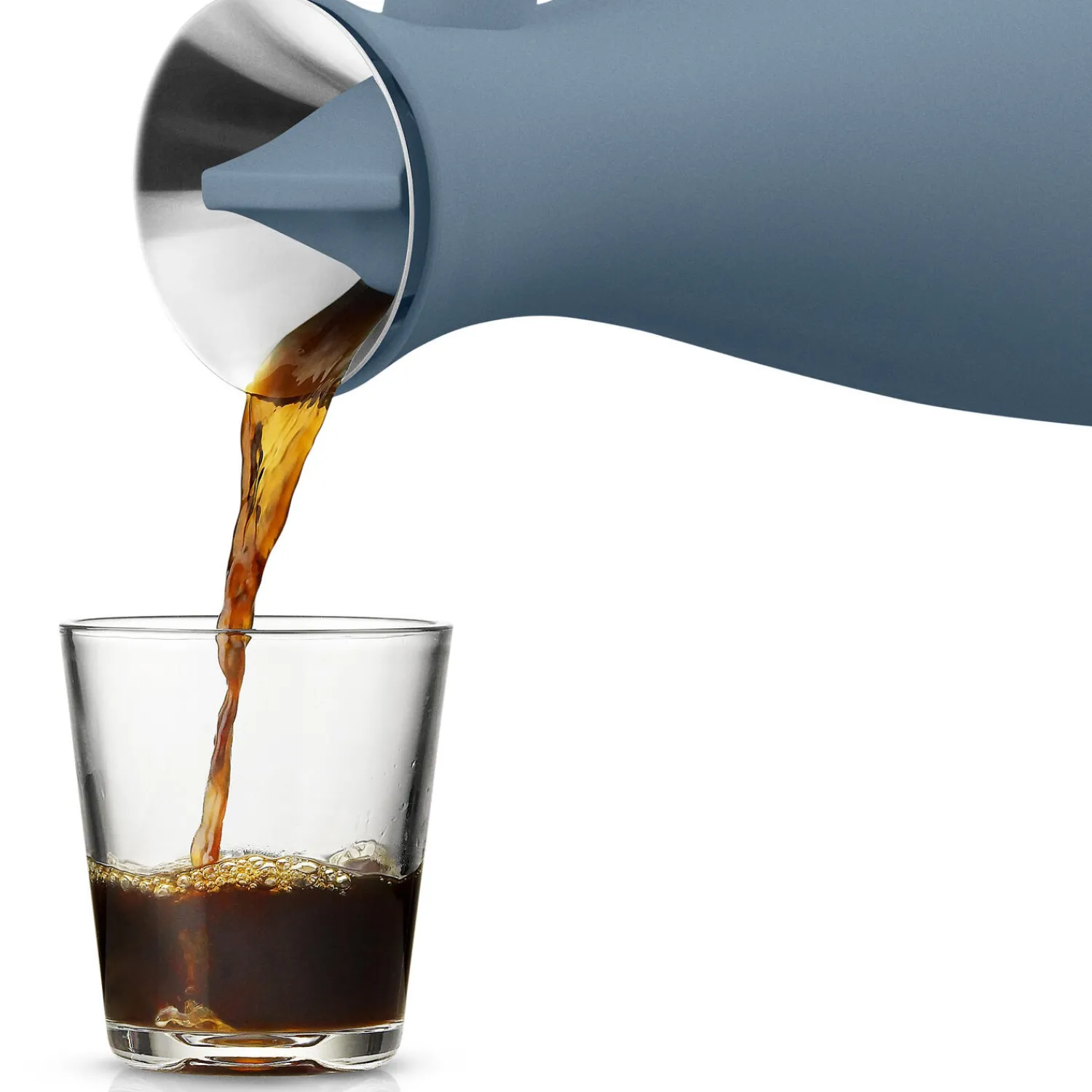 Det skulpturelle design bygger på det prisvindende koncept, der ved hjælp af en hældekrave i rustfrit stål gør termokanden 100% drypfri. Termokanden er med sin brede åbning i toppen nem at fylde, og det lave tyngdepunkt gør, at den står stabilt på bordet. Fremstillet i kunststof udvendigt, hældekrave af rustfrit stål og silikone og med en udskiftelig glaskolbe indvendigt. Indeholder 1 liter.