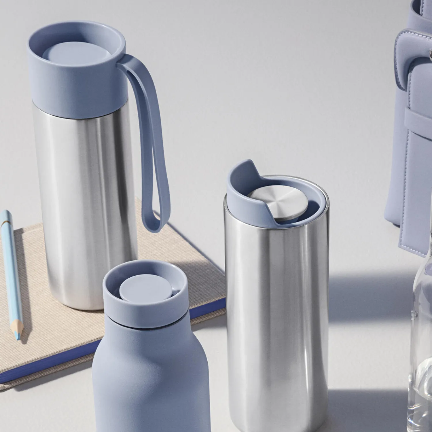 Den praktiske termokop, To Go Cup, kan tages med overalt. Låget er let at åbne og lukke på farten takket være det funktionelle låg med klik-funktion, der let kan betjenes med én hånd. Fyld To Go Cup med kaffe eller anden drik – den holder perfekt på varmen eller kulden, da den er dobbeltvægget med vakuum-effekt. Den praktiske bærestrop af silikone gør det nemt at transportere flasken rundt, så man altid har noget at drikke lige ved hånden.