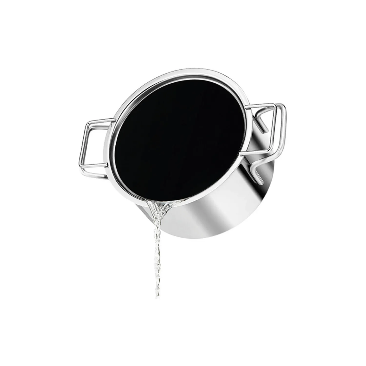 Hæld nemt vandet fra pasta og kartofler. Hældelåget i rustfrit stål har integreret si, der er tildækket af en silikonedug. Når du hælder slipper silikonen automatisk låget, så vandet kan løbe ud via sien. Tåler maskinopvask.