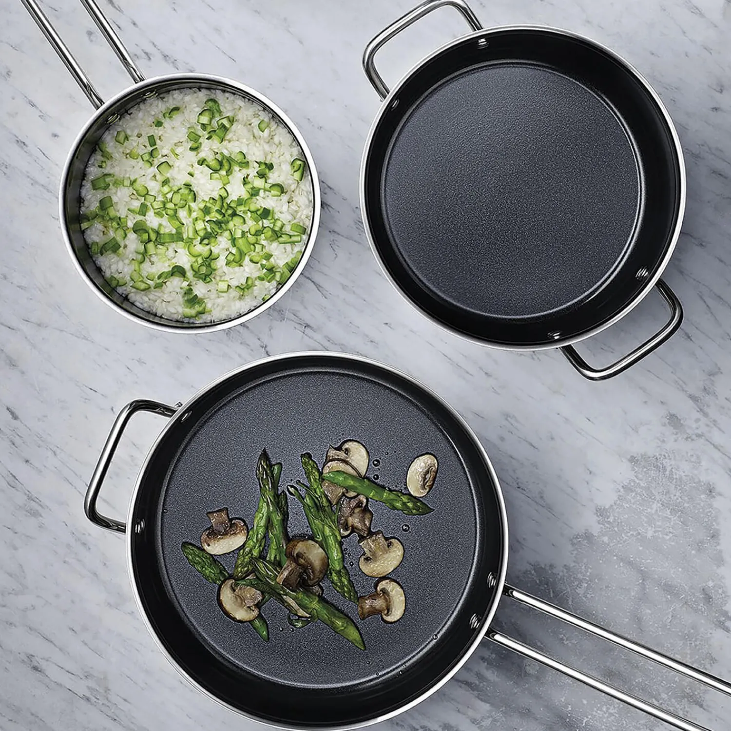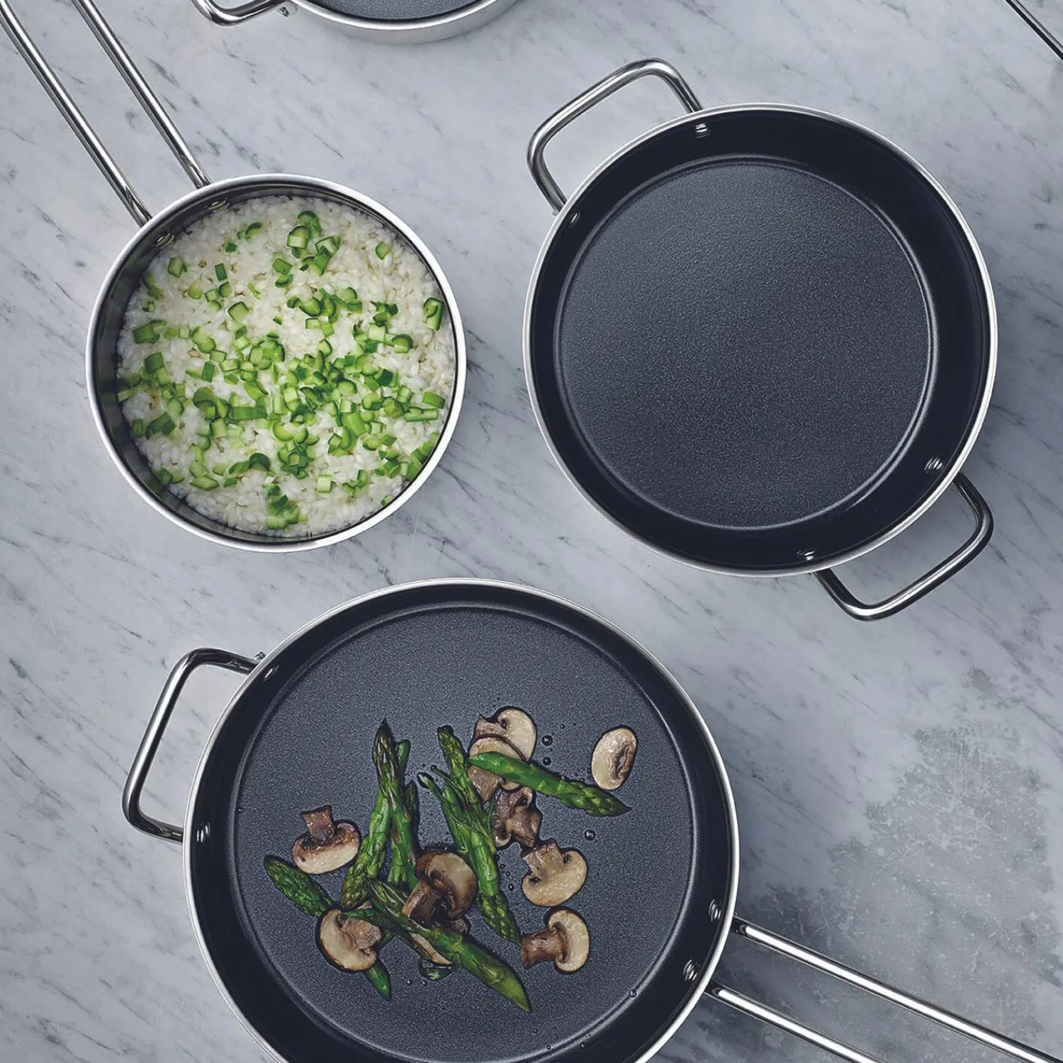 En grydeserie, der forener det rustfrit stål-look med praktisk keramisk belægning, så du kan holde en stringent designlinje i køkkenet uden at risikere, at maden brænder fast. Designet bygger videre på det originale Ole Palsby/Eva Trio design fra 1977, hvor der som noget nyt er blevet tilføjet en indvendig keramisk belægning, der tåler meget høje temperaturer – helt op til 400 grader. Denne lille kasserolle med keramisk belægning passer til de eksisterende Eva Trio låg og kan bruges på alle varmekilder inklusive induktion.