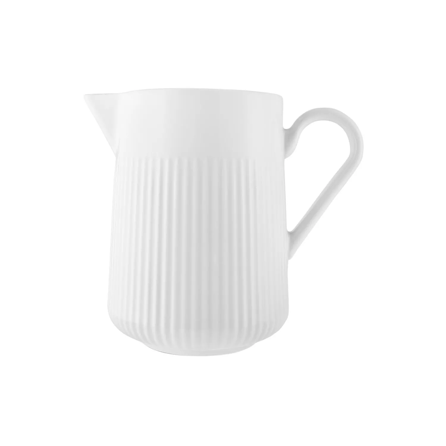 Den elegante kande med hank pynter på det festlige middagsbord, men er robust nok til daglig brug. Dens størrelse gør den velegnet til vand, saft eller som sovsekande. Kanden er fremstillet i klassisk, hvidt porcelæn og udsmykket med Legio Nova-seriens velkendte signaturriller. Porcelænet er af højeste kvalitet og tåler alt fra ovn og fryser til mikrobølgeovn og opvaskemaskine. Legio Nova-stellet er dækket af en 10-års garanti.